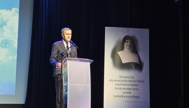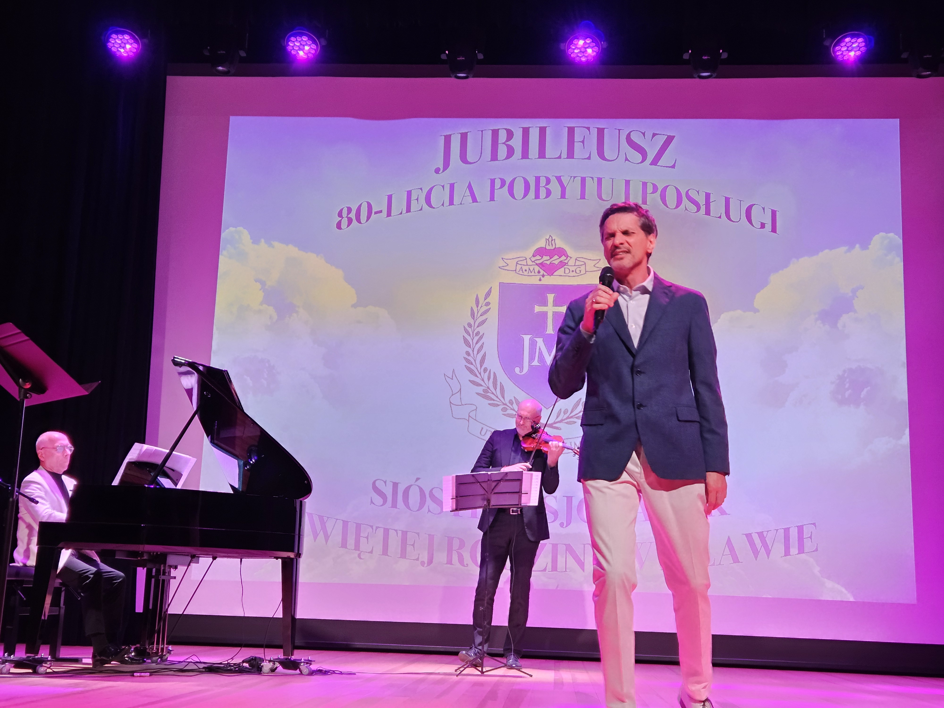 Przybyłych do kina Kosmos gości powitała Przełożona Generalna Zgromadzenia Sióstr Misjonarek Świętej Rodziny M. Joela Agnieszka Zawadzka. Wykład na temat historii i działalności zgromadzenia w Mławie wygłosił dr hab. Leszek Zygner – Profesor Państwowej Akademii Nauk Stosowanych im. Ignacego Mościckiego w Ciechanowie. Prawdziwą ucztą dla ucha był późniejszy koncert w wykonaniu śpiewaka operowego Roberta Szpręgla z towarzyszącym mu zespołem.