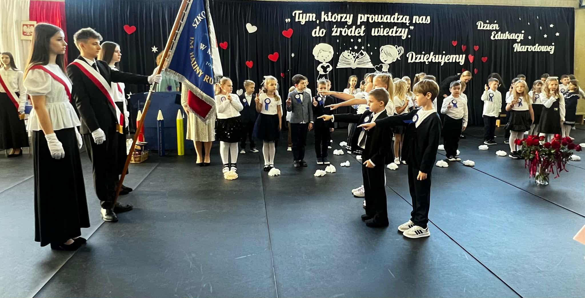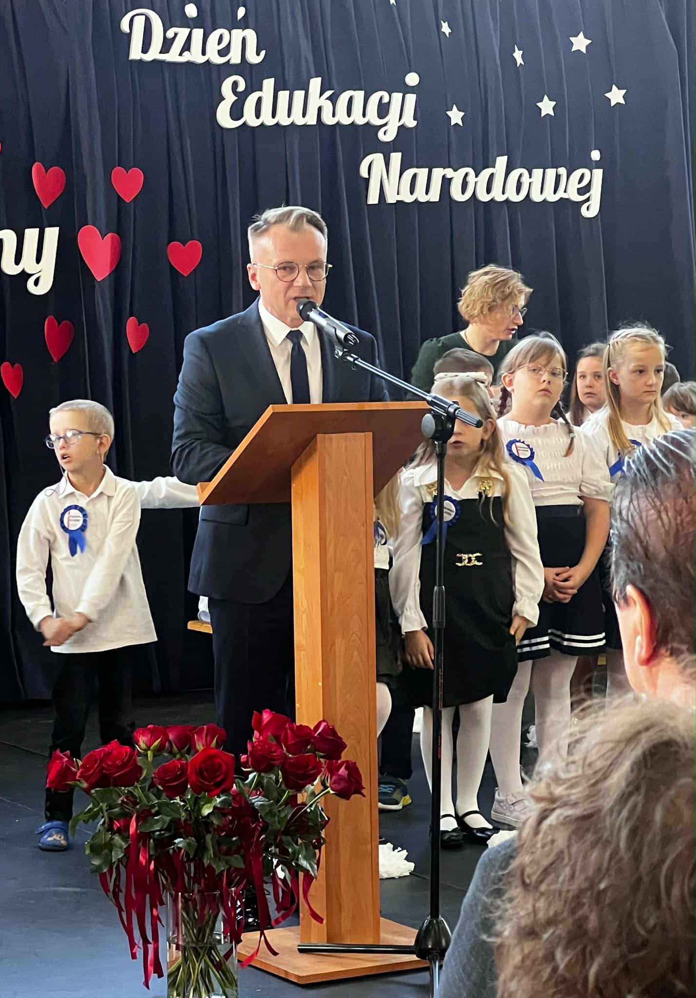 Apel z okazji Dnia Edukacji Narodowej w ZPO 2 był wyjątkowym wydarzeniem pełnym wdzięczności, refleksji i radości! Uroczystość rozpoczęła się wprowadzeniem sztandaru, po czym wysłuchaliśmy przemówienia Zastępcy Burmistrza – pana Marcina Burchackiego, a także wielu ciepłych słów podziękowań i wdzięczności od Pani Dyrektor Beaty Ciesielskiej-Betlińskiej. Dziękujemy również zaproszonym gościom za uświetnienie swoją obecnością tego wyjątkowego dnia. Następnie podziwialiśmy piękną część artystyczną w wykonaniu uczniów klas 6b, 5a oraz 5b, którym towarzyszył nasz wspaniały chórek szkolny.