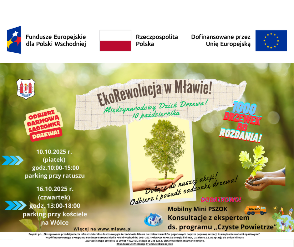 Akcja organizowana jest w ramach projektu „Zintegrowane przedsięwzięcia infrastrukturalne dostosowujące teren Miasta Mława do zmian warunków pogodowych poprzez poprawę retencji i zarządzanie wodami opadowymi”, współfinansowanego z Funduszy Europejskich. Projekt ma na celu zwiększenie terenów zielonych, poprawę retencji wód opadowych oraz lepsze przygotowanie miasta na zmiany klimatyczne.