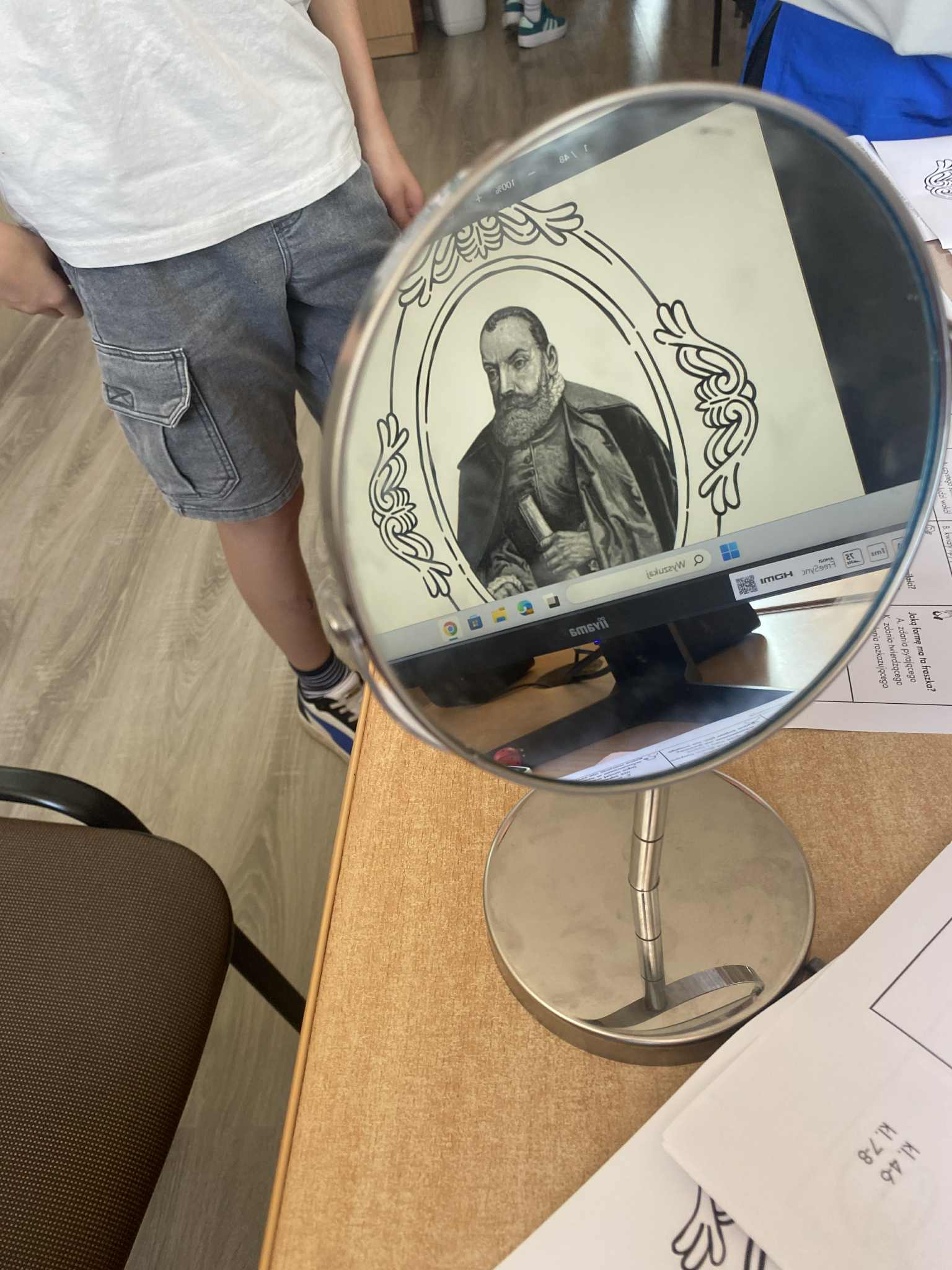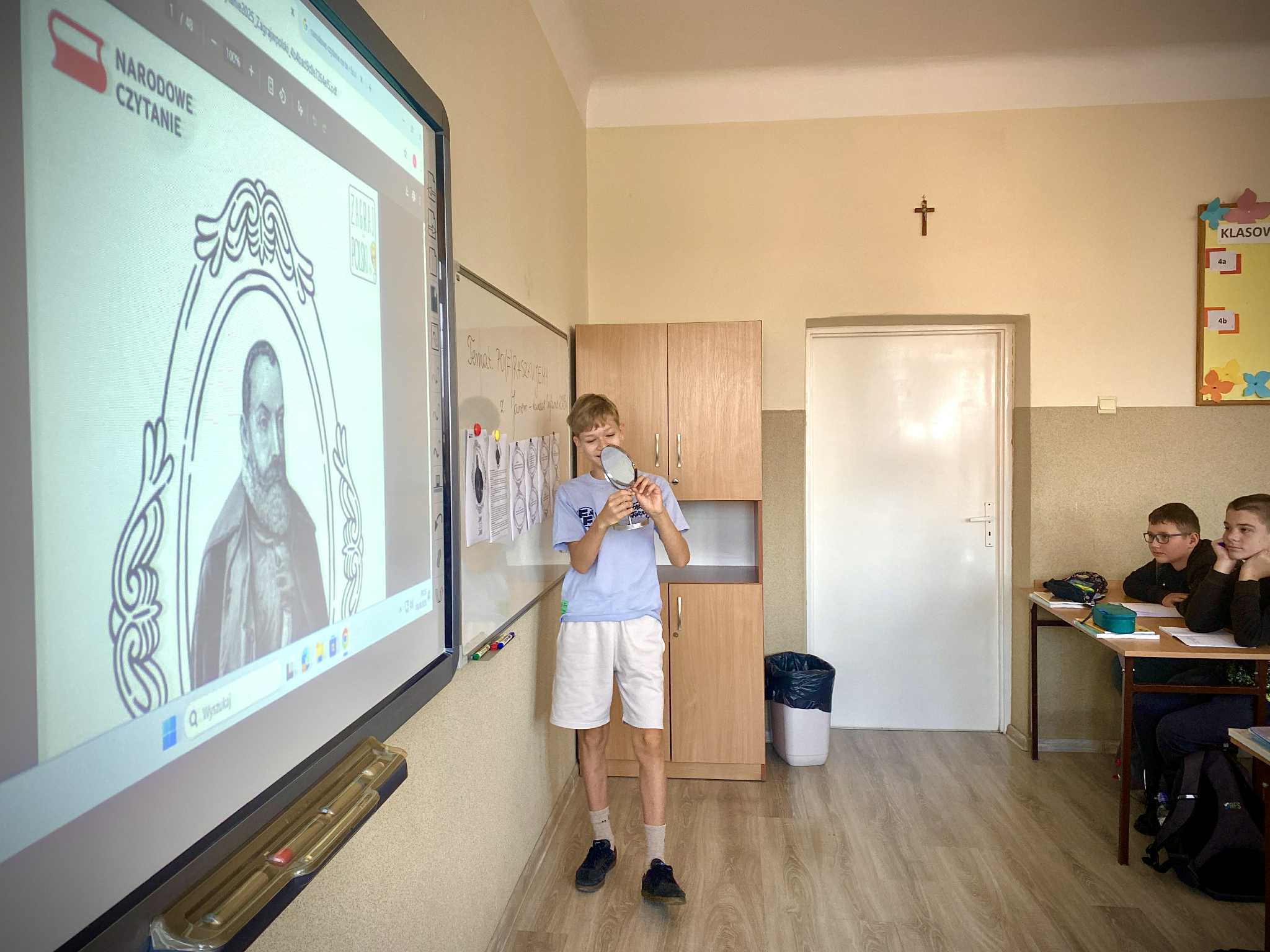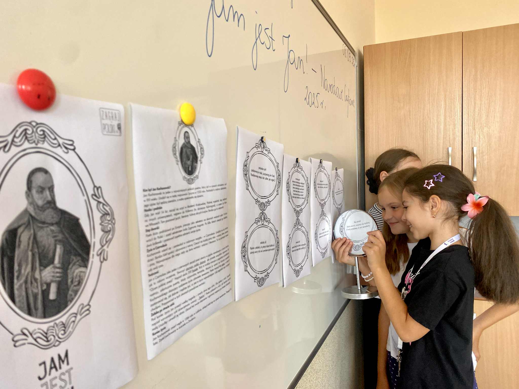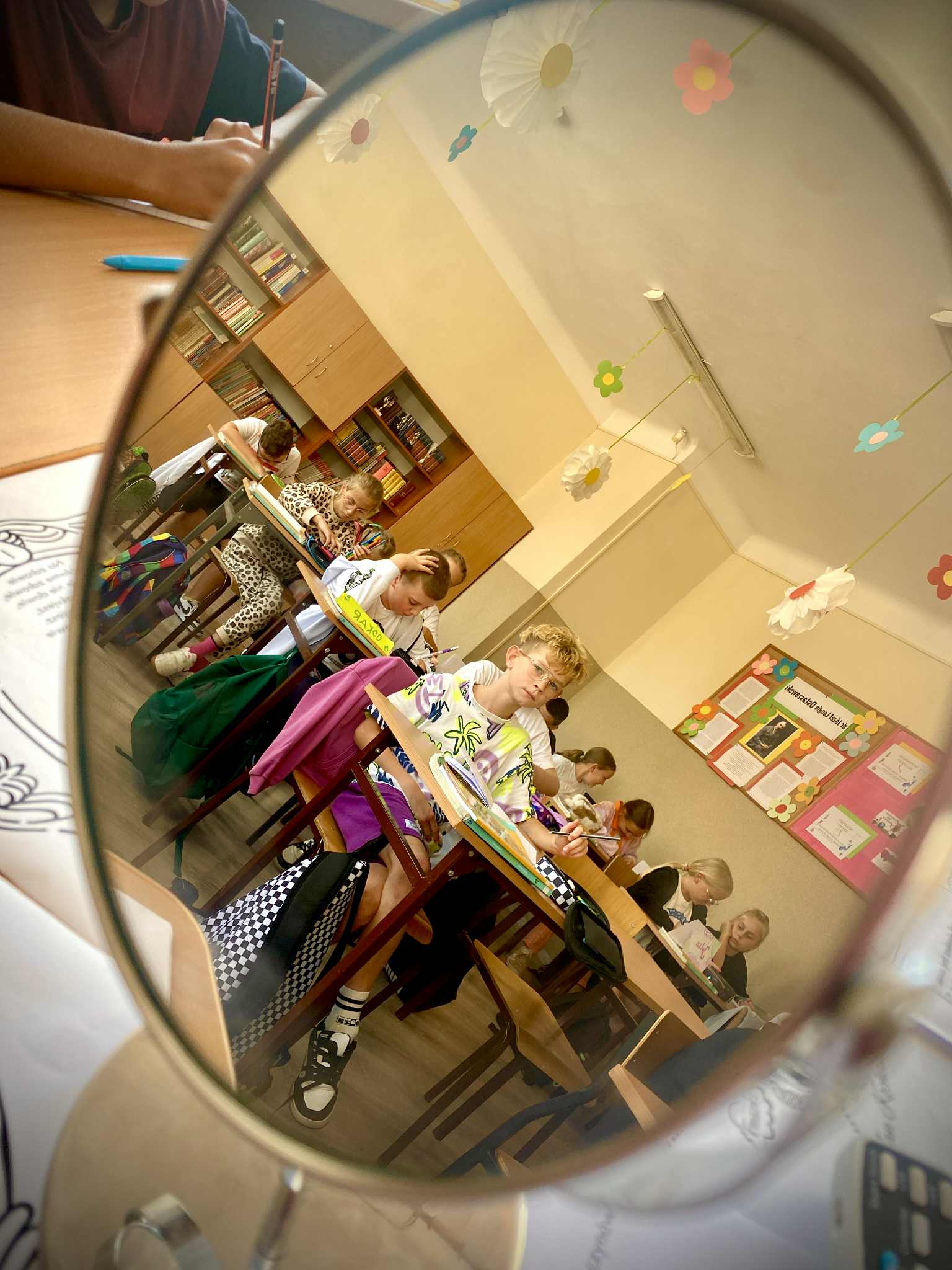 Dużym wyzwaniem okazało się czytanie tekstów w lustrzanym odbiciu – ale nasi uczniowie świetnie dali sobie radę! Na zakończenie spróbowali własnych sił w krótkim opowiadaniu inspirowanym twórczością poety. Była to nie tylko lekcja literatury, lecz także doskonała okazja do zabawy, refleksji i wspólnego przeżywania kultury.