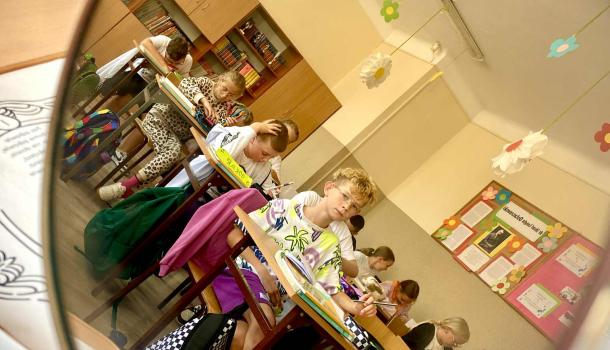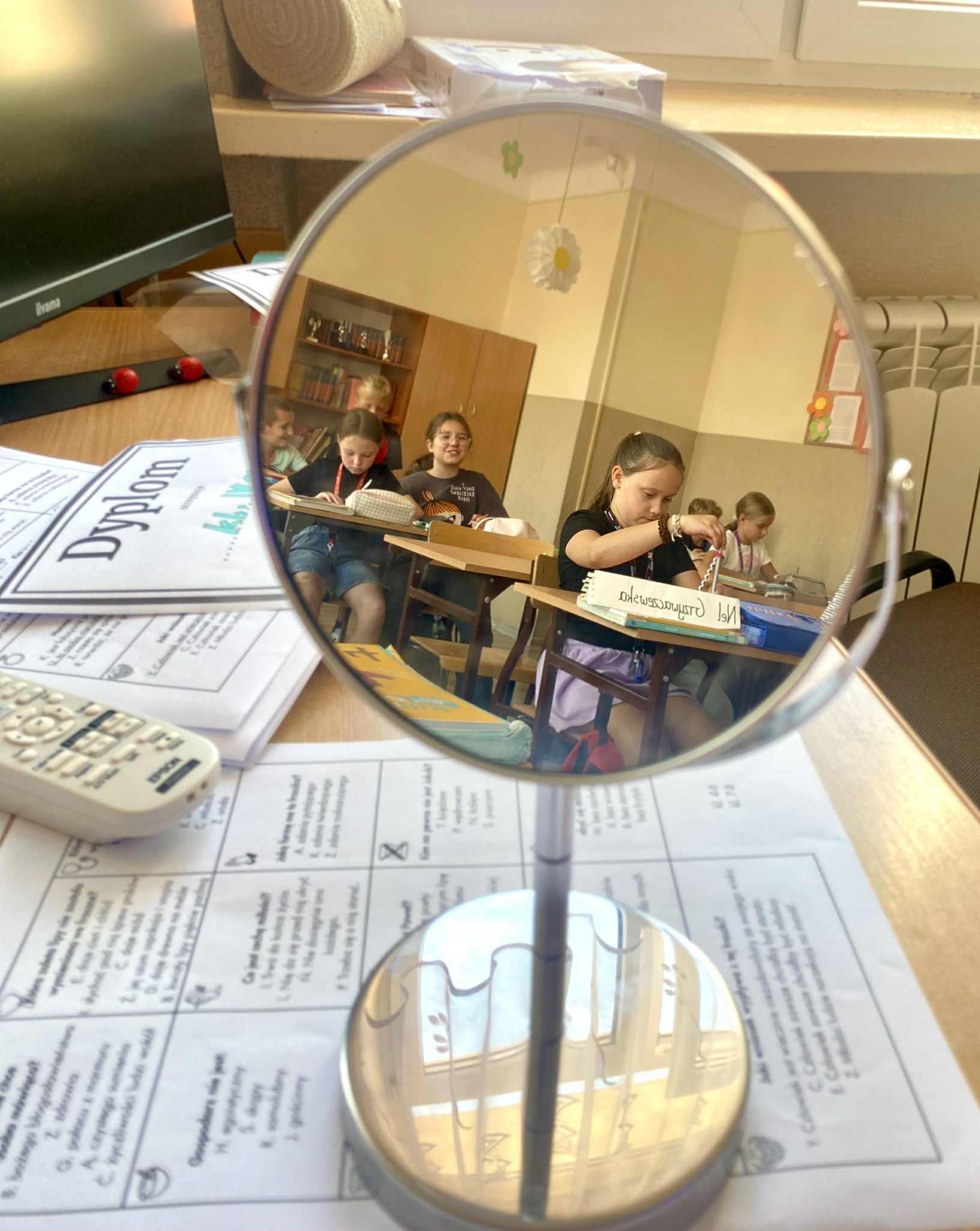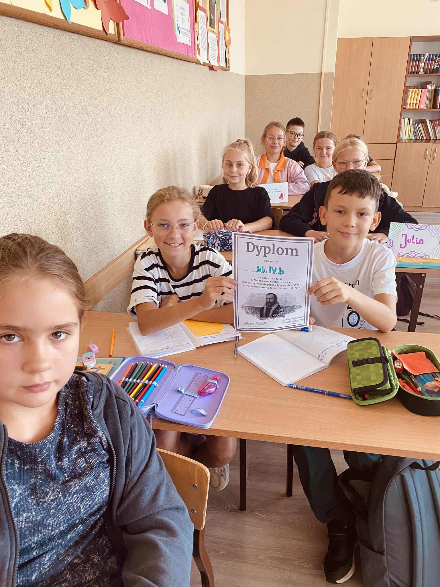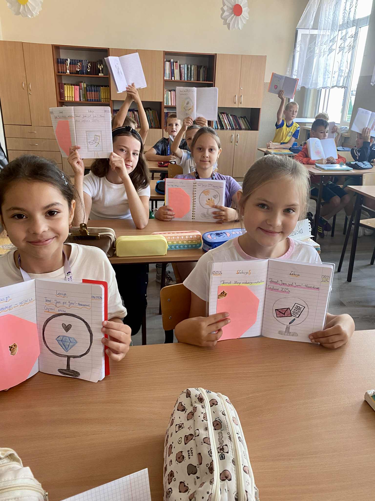 Dużym wyzwaniem okazało się czytanie tekstów w lustrzanym odbiciu – ale nasi uczniowie świetnie dali sobie radę! Na zakończenie spróbowali własnych sił w krótkim opowiadaniu inspirowanym twórczością poety. Była to nie tylko lekcja literatury, lecz także doskonała okazja do zabawy, refleksji i wspólnego przeżywania kultury.