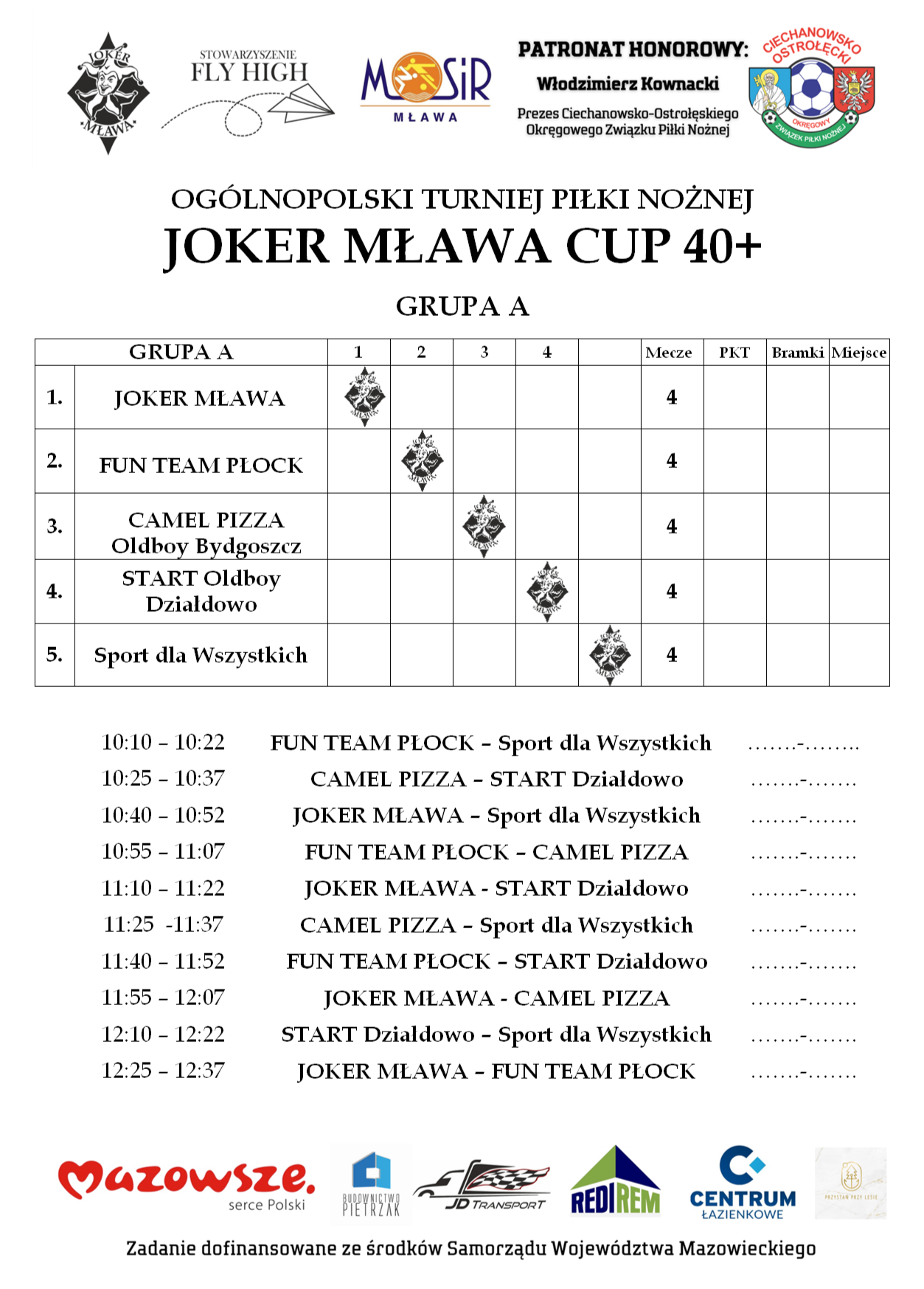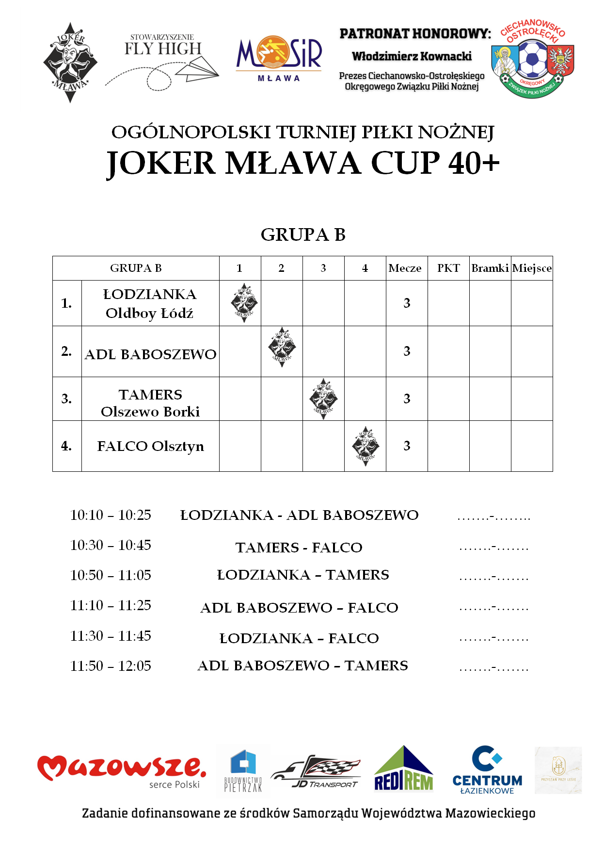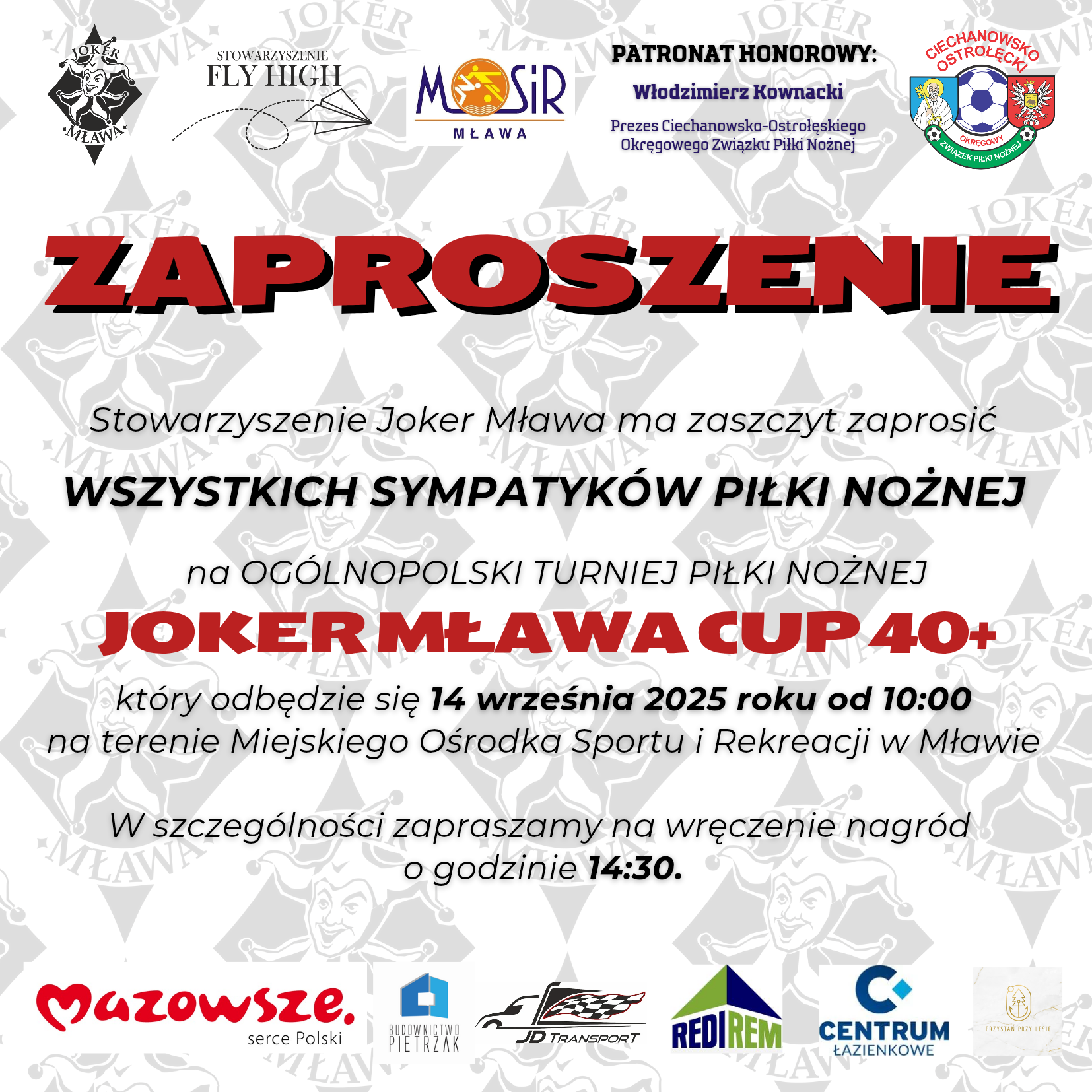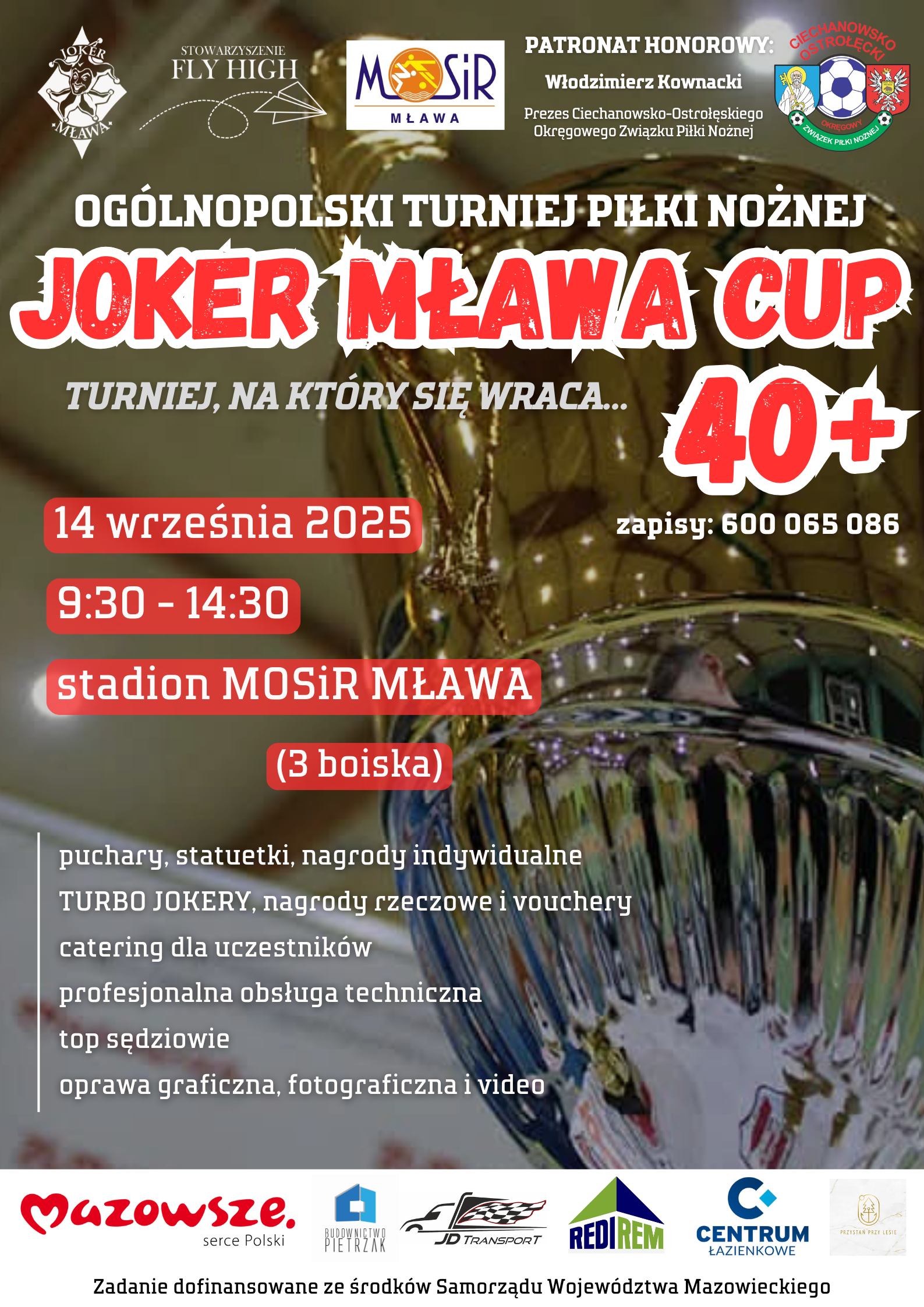 Stowarzyszenie Joker Mława, Stowarzyszenie Fly High i Dyrektor Miejskiego Ośrodka Sportu i Rekreacji w Mławie serdecznie zapraszają do kibicowania mławskim oldboyom w najbliższą niedzielę 14 września br. Zawody rozegrane zostaną na obiektach MOSiR-u od godziny 10.00.