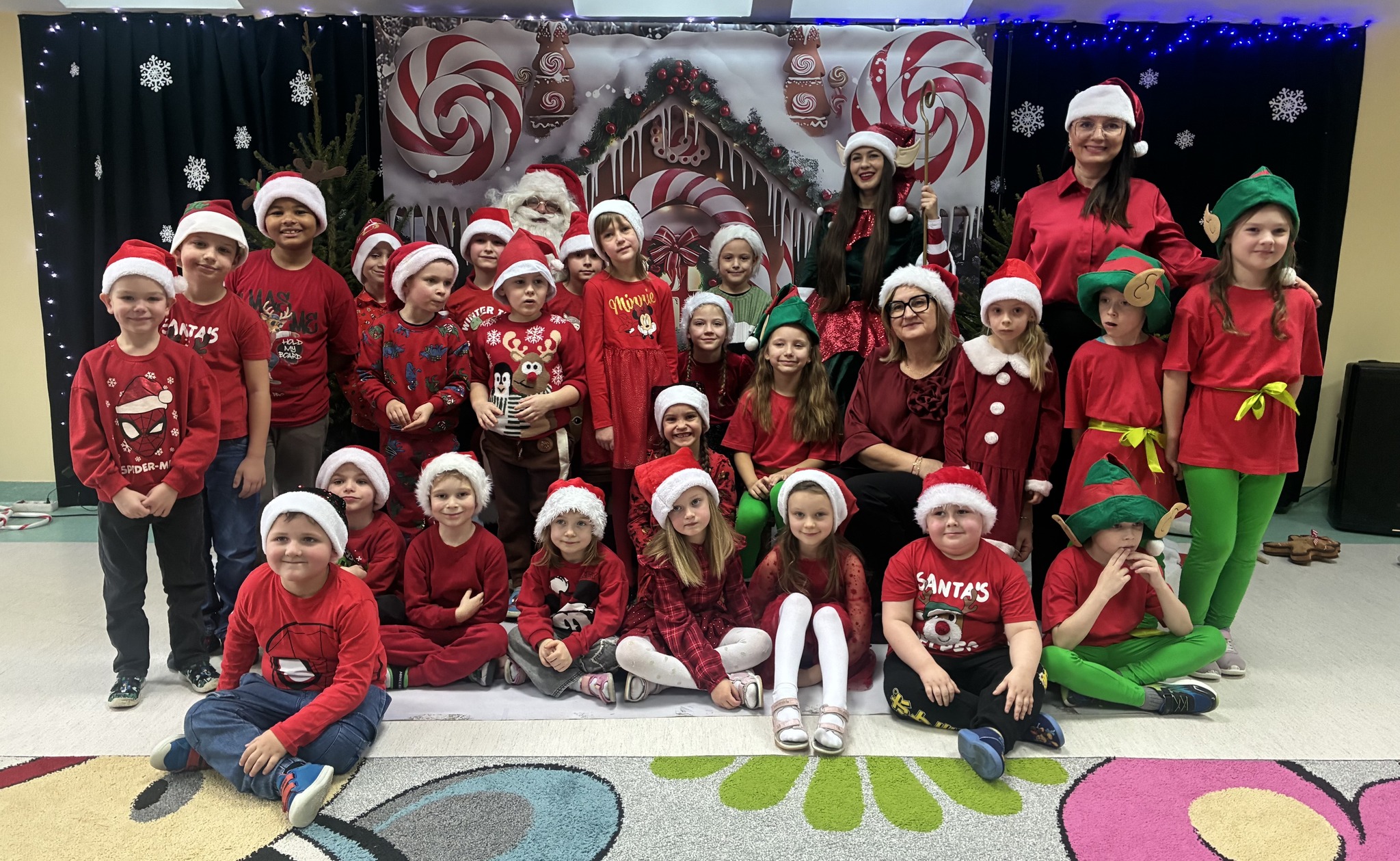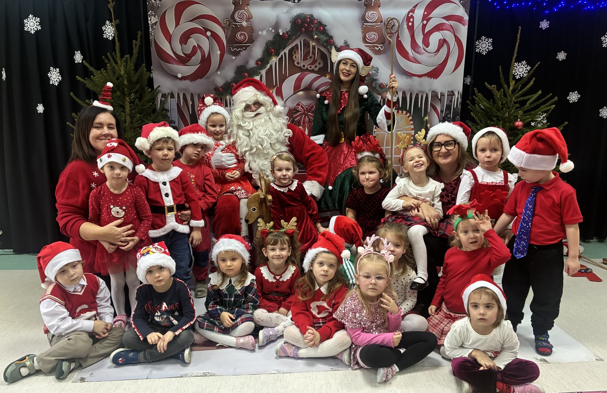 Święty Mikołaj został przywitany bardzo serdecznie, a dzieci swoją energią i entuzjazmem stworzyły niezwykle ciepłą atmosferę. Ten dzień pełen był emocji, świątecznej magii i wspólnych przeżyć, które na długo pozostaną w pamięci naszych przedszkolaków.