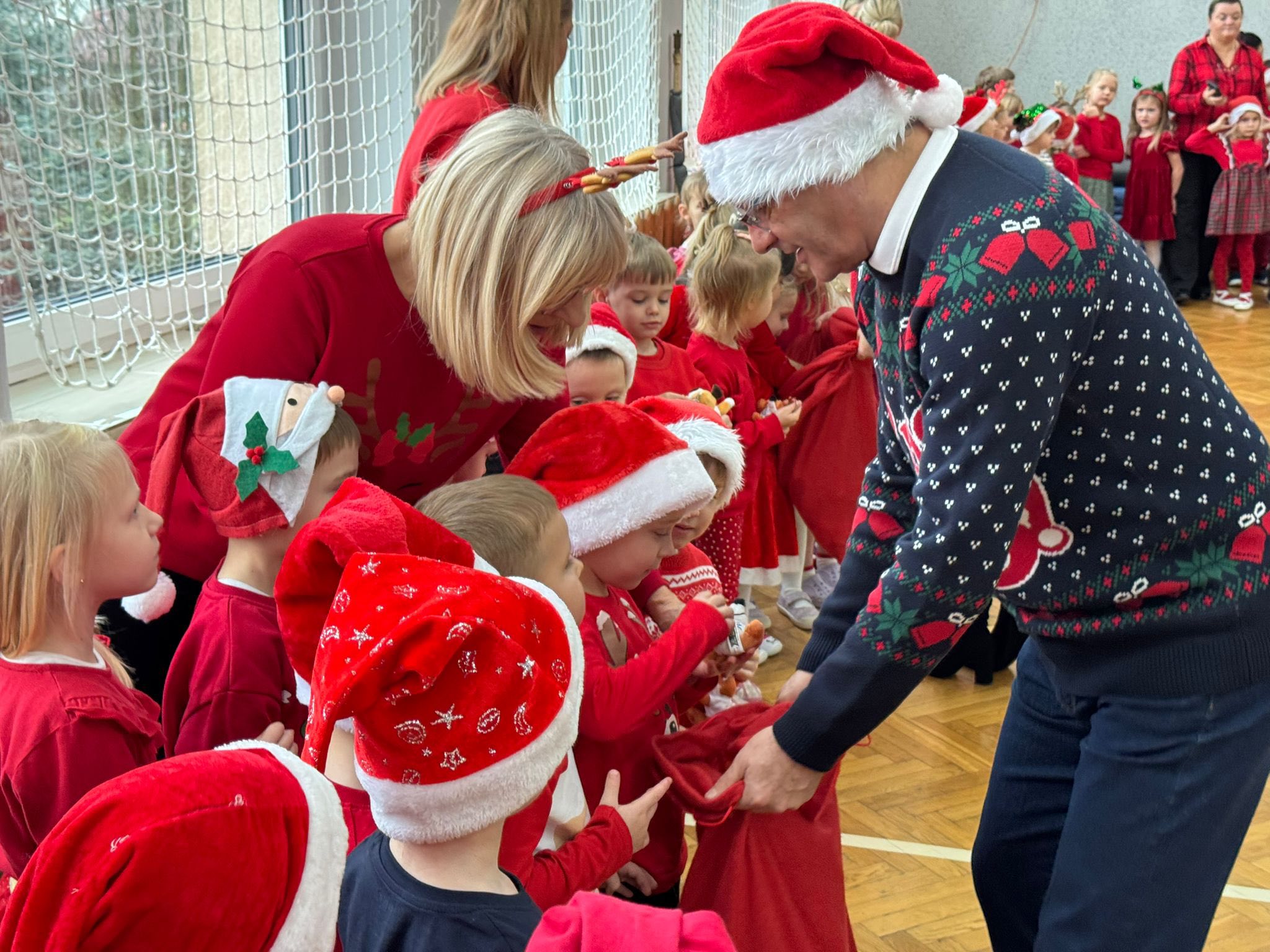 5 grudnia 2025 r. przedszkolaki z MPS 2 odwiedził Pan Burmistrz Piotr Jankowski wraz z pracownikami Urzędu Miasta Mława, by przekazać wyjątkowe prezenty. Dzieci z ogromną radością przyjęły upominki, a spotkanie przebiegło w ciepłej i radosnej atmosferze.