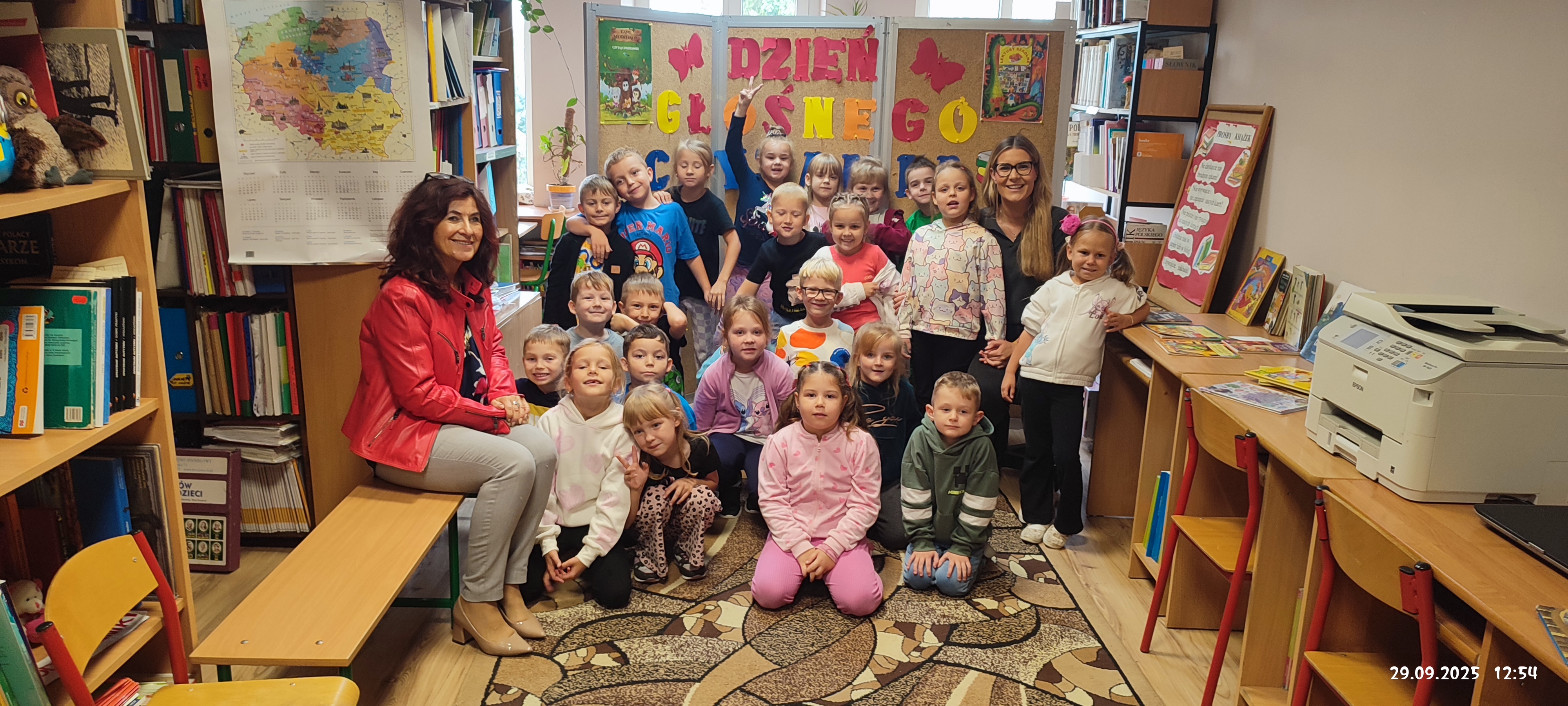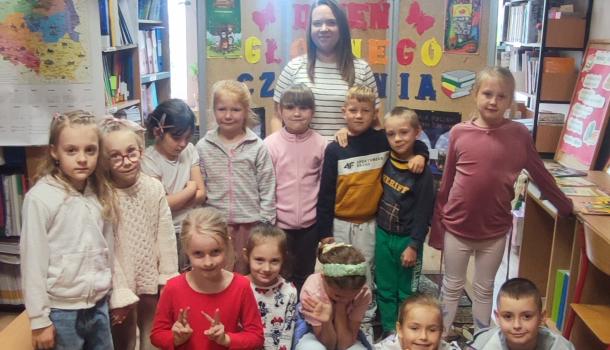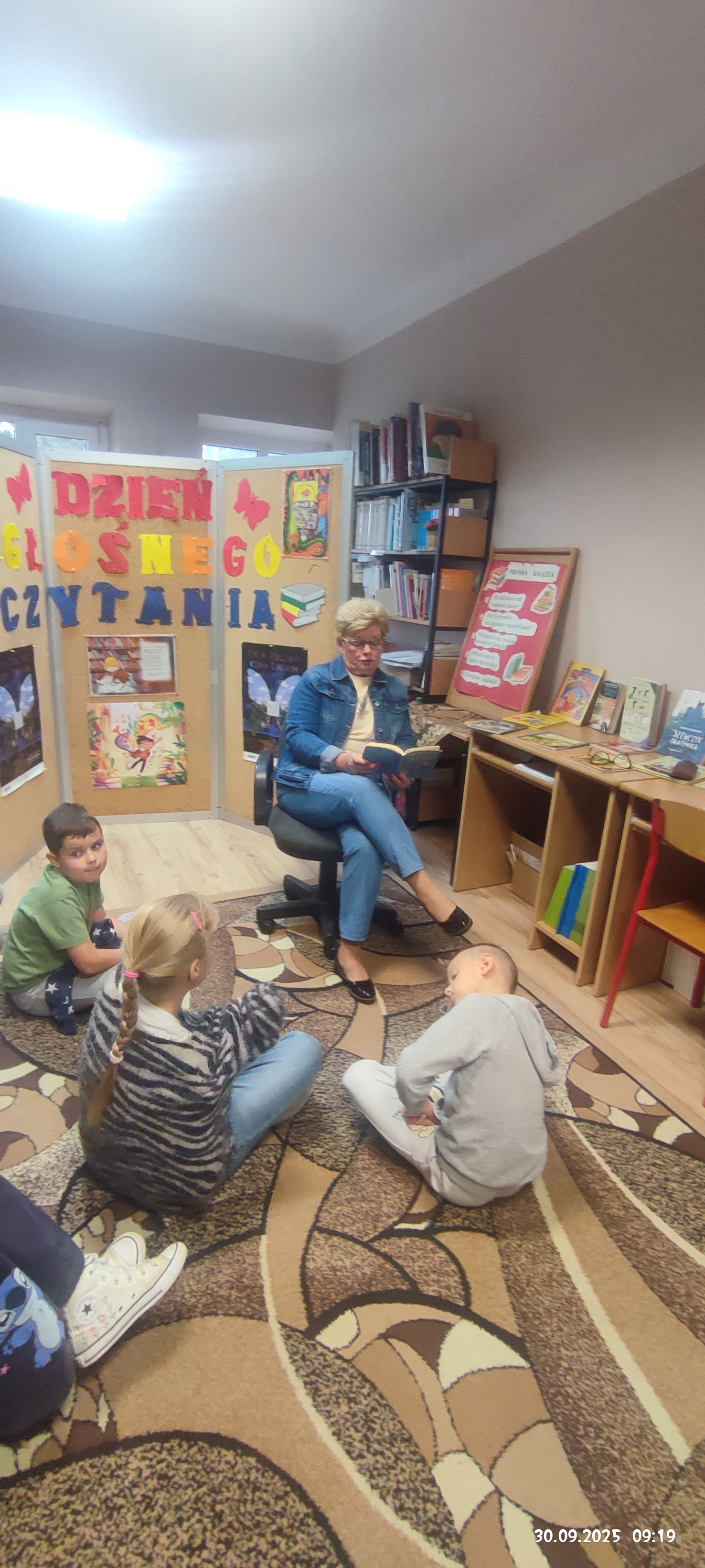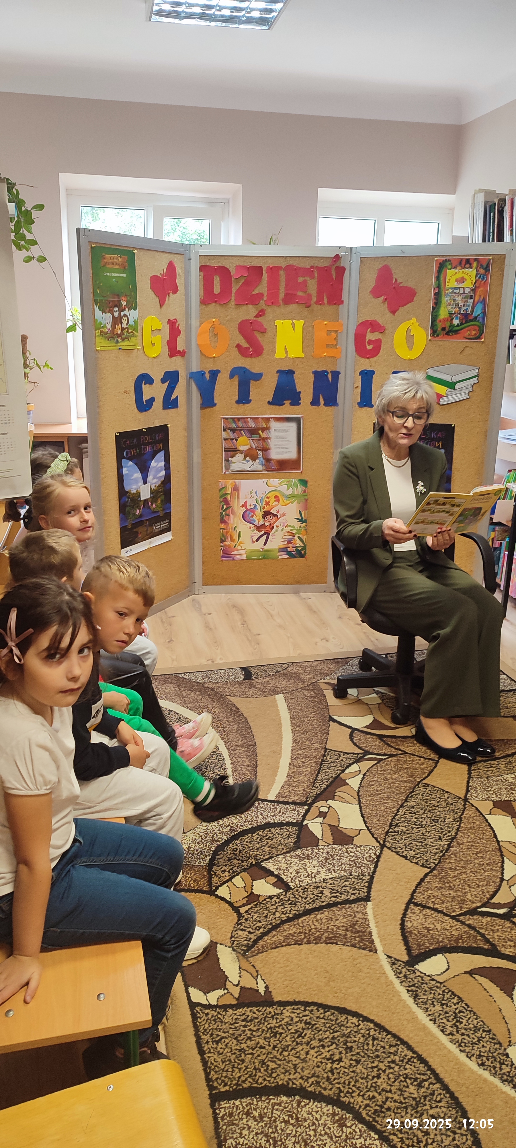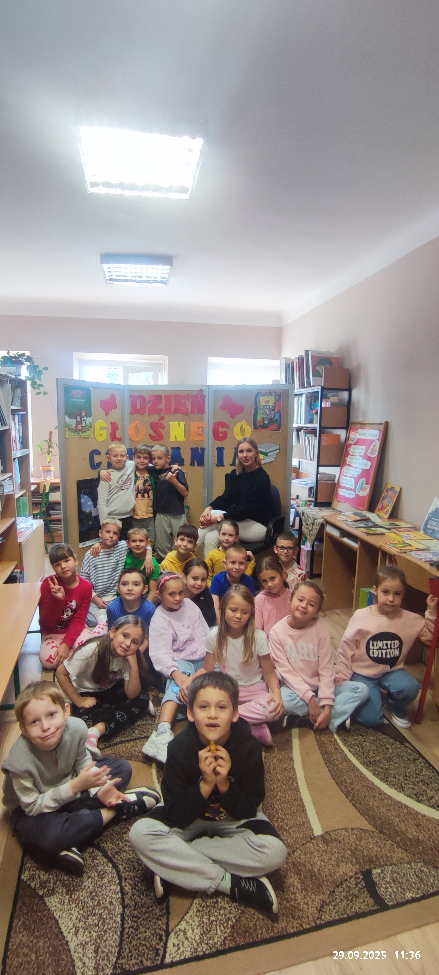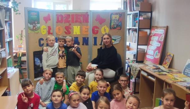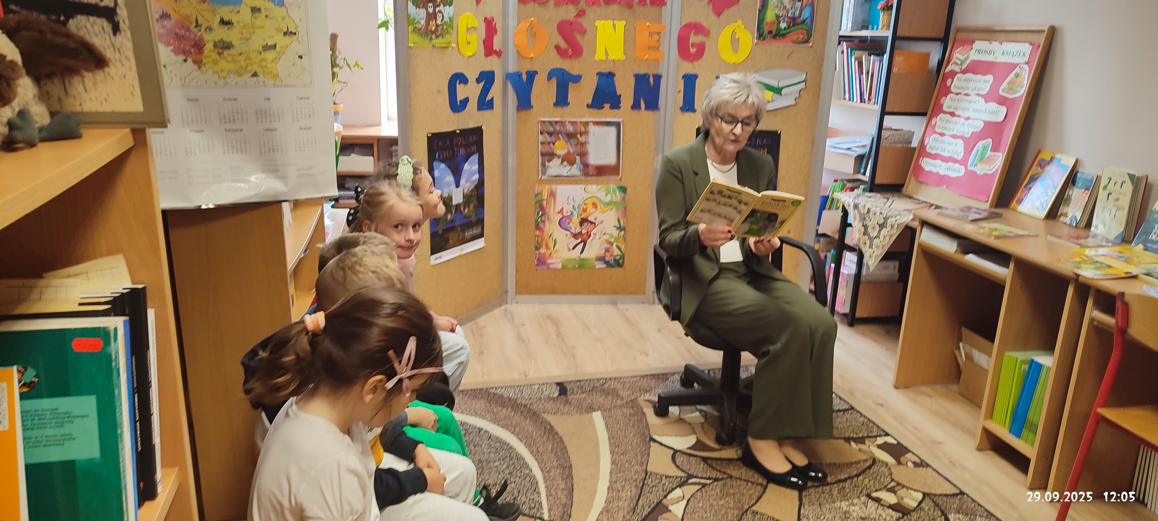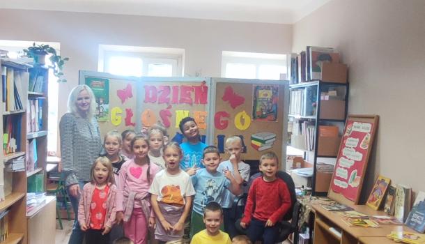 W dniach 29-30 września obchodziliśmy Ogólnopolski Dzień Głośnego Czytania. W związku z tym do biblioteki zostali zaproszeni uczniowie klas 1-3 oraz grupy przedszkolne: Żabki i Koszałek-Opałek. Dzieci wysłuchały wybranych opowiadań, wierszyków oraz zagadek czytanych przez Panią dyrektor Janinę Lampkowską, nauczycieli i chętnych uczniów...