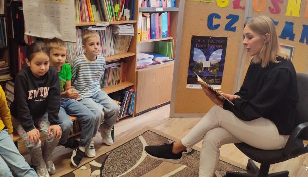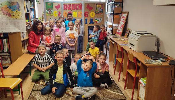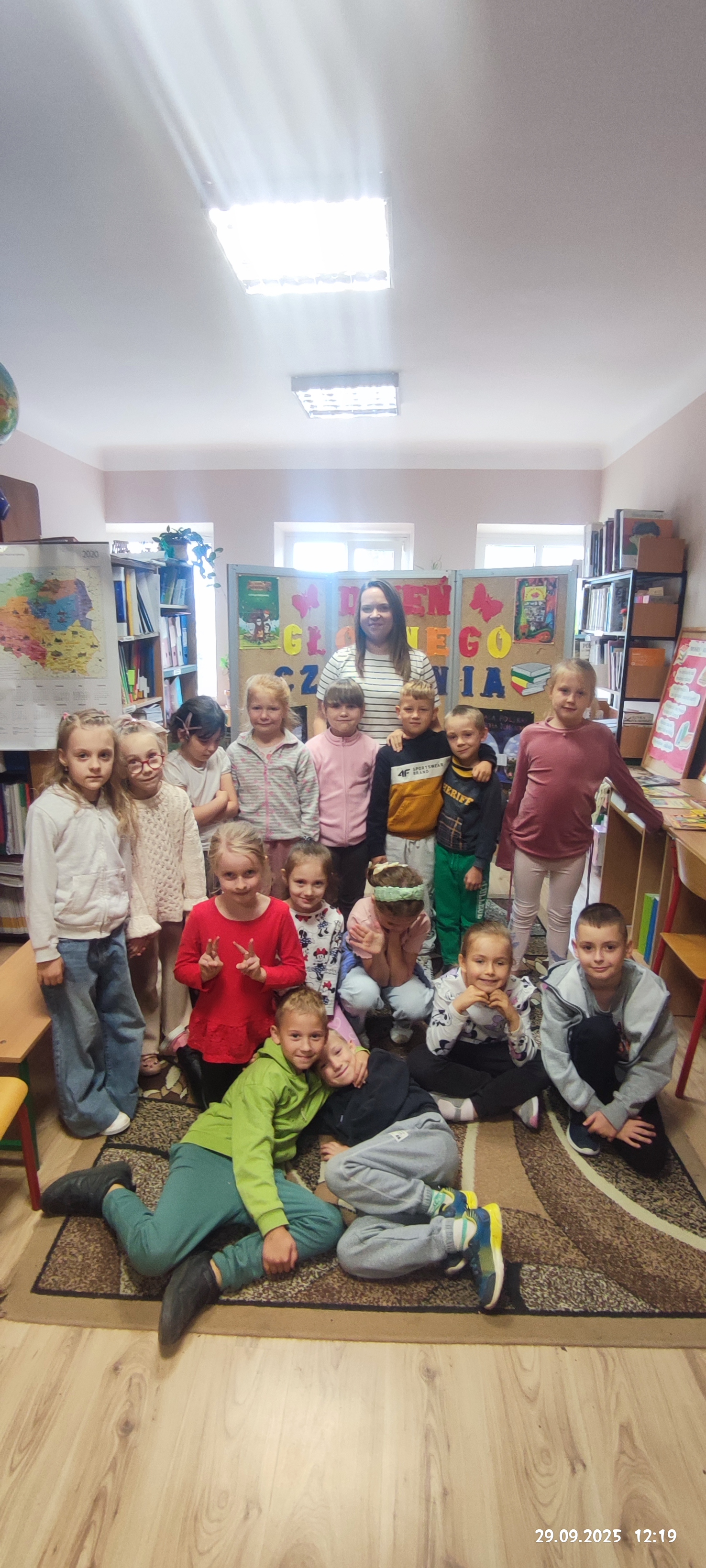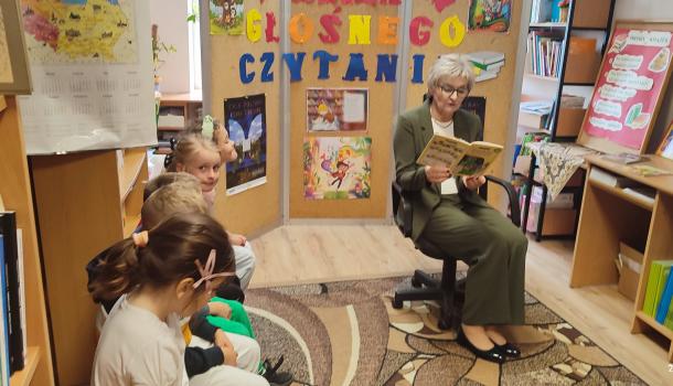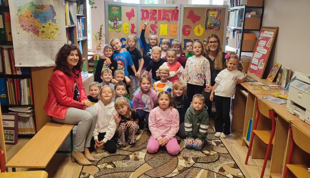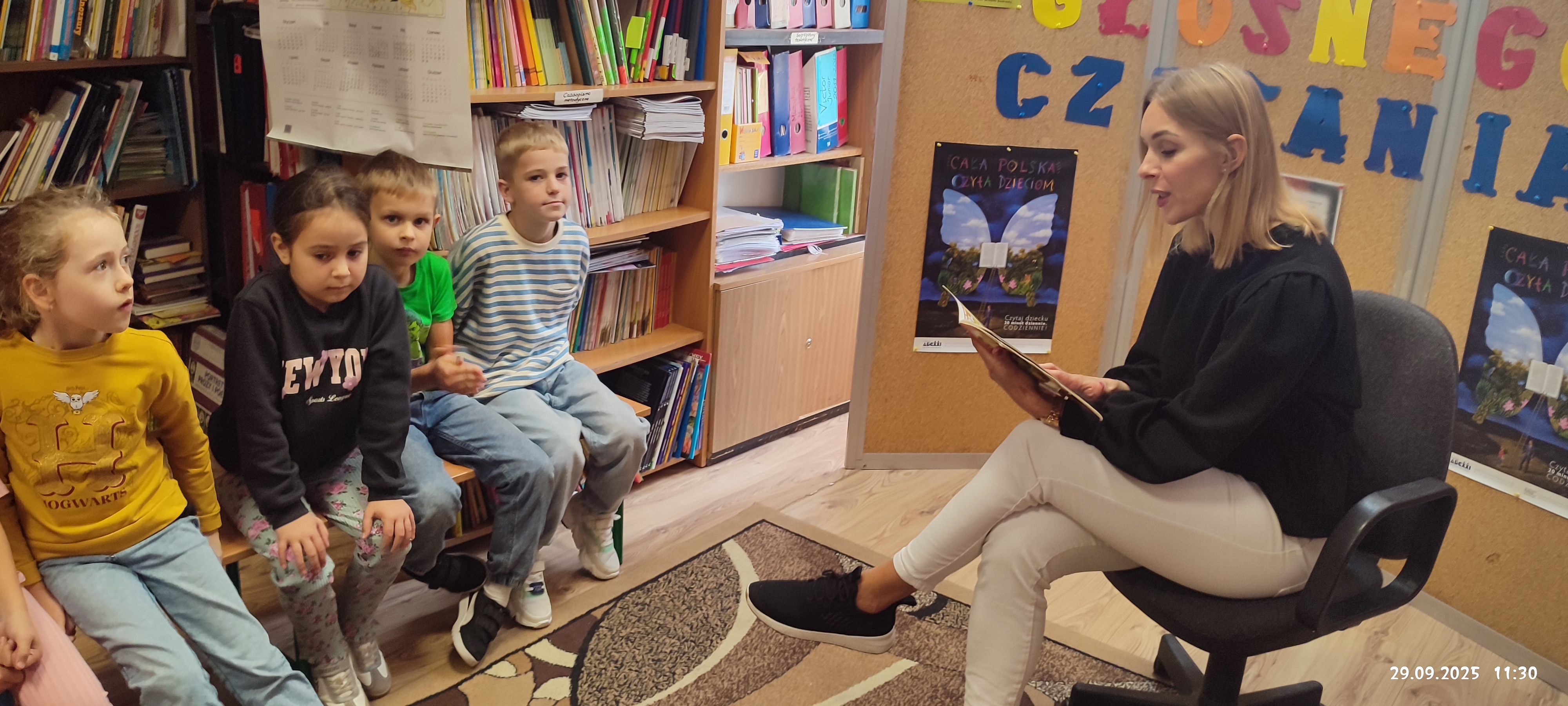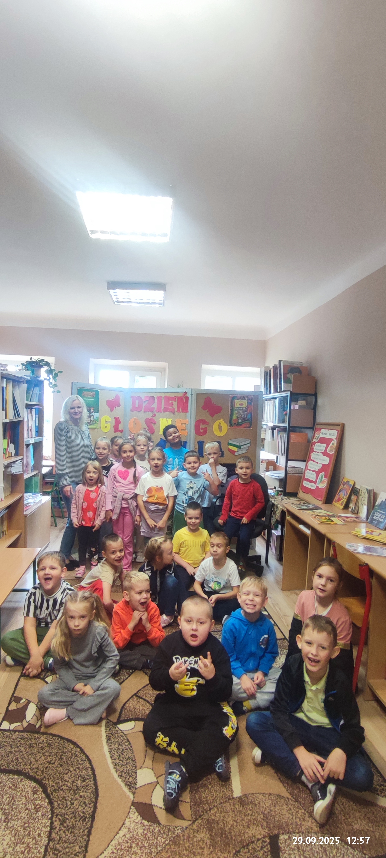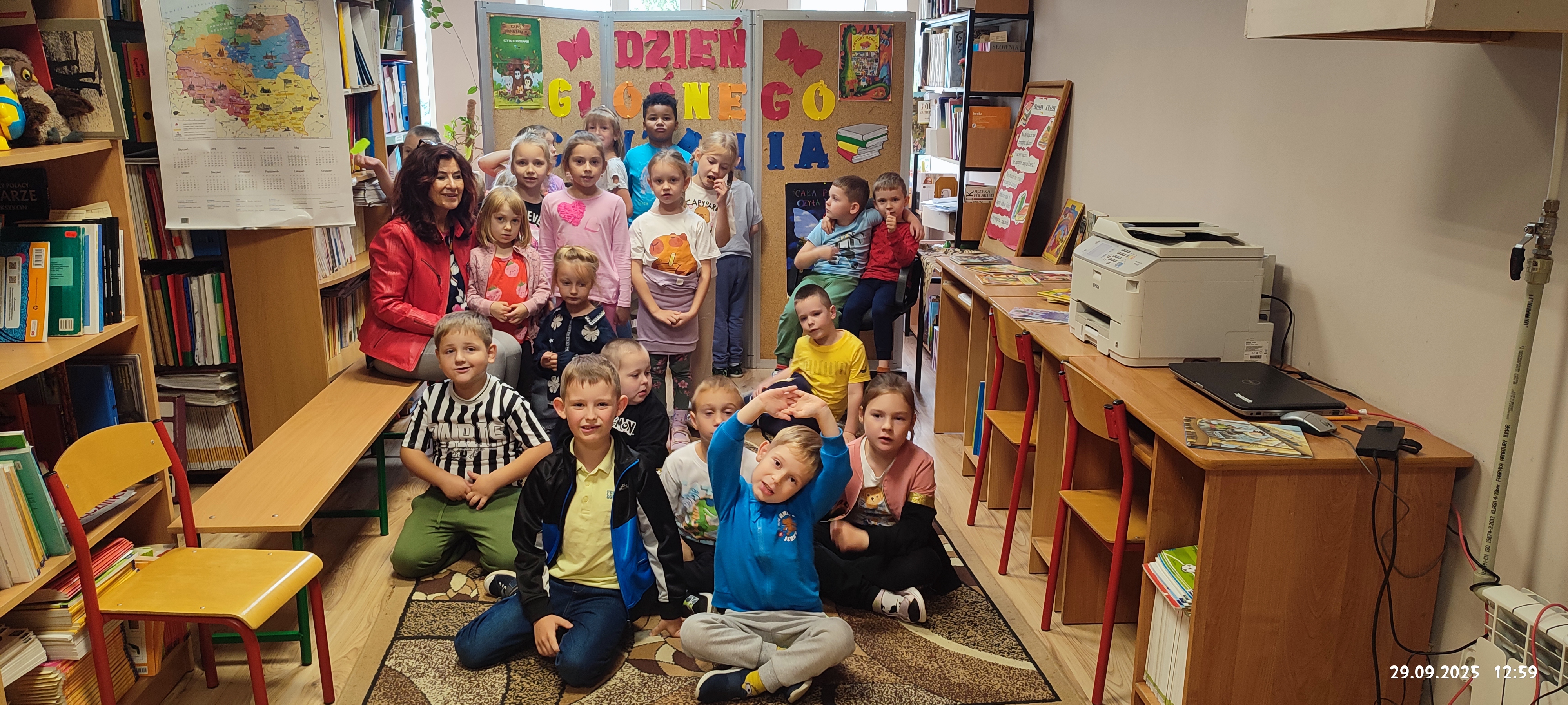 W dniach 29-30 września obchodziliśmy Ogólnopolski Dzień Głośnego Czytania. W związku z tym do biblioteki zostali zaproszeni uczniowie klas 1-3 oraz grupy przedszkolne: Żabki i Koszałek-Opałek. Dzieci wysłuchały wybranych opowiadań, wierszyków oraz zagadek czytanych przez Panią dyrektor Janinę Lampkowską, nauczycieli i chętnych uczniów...