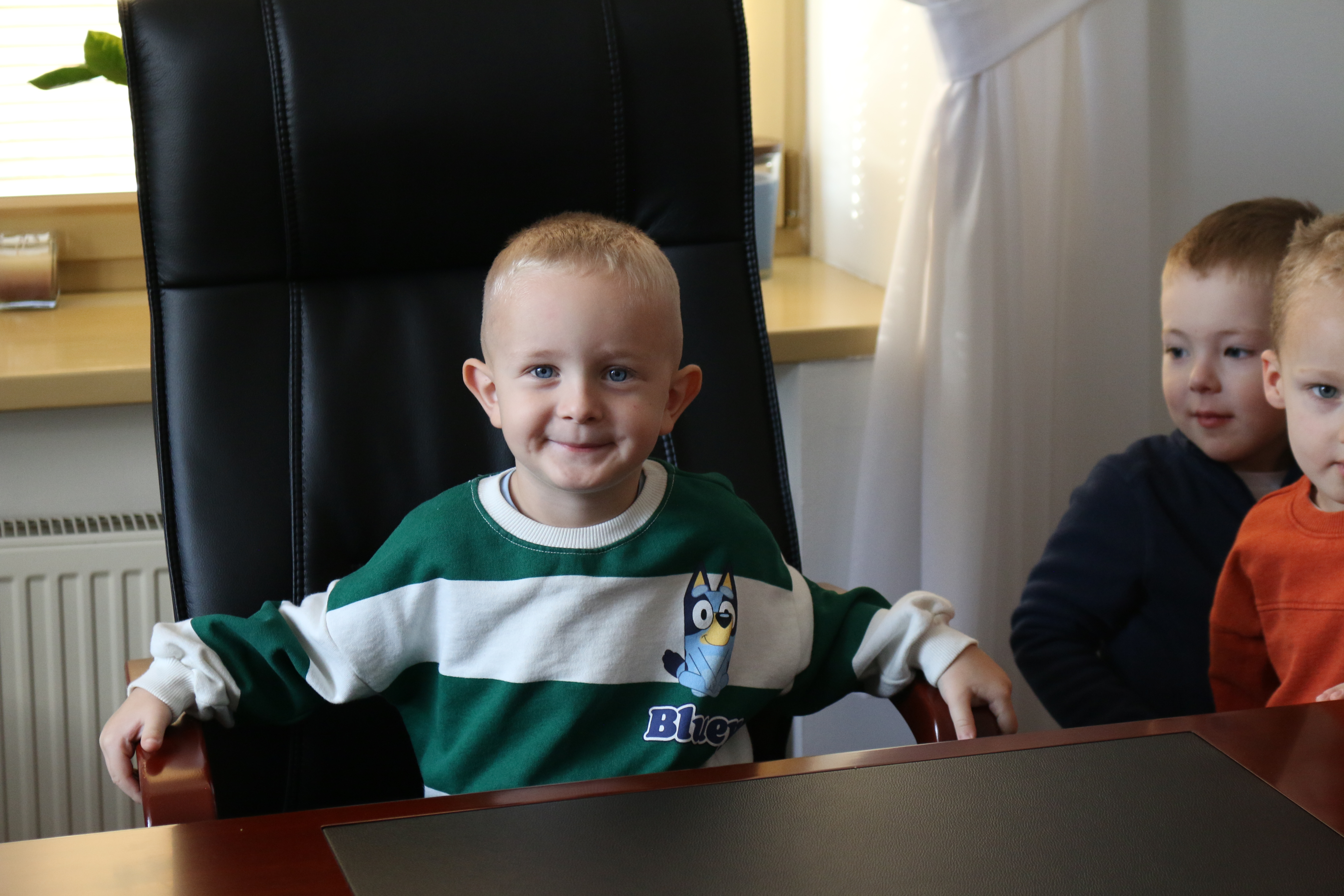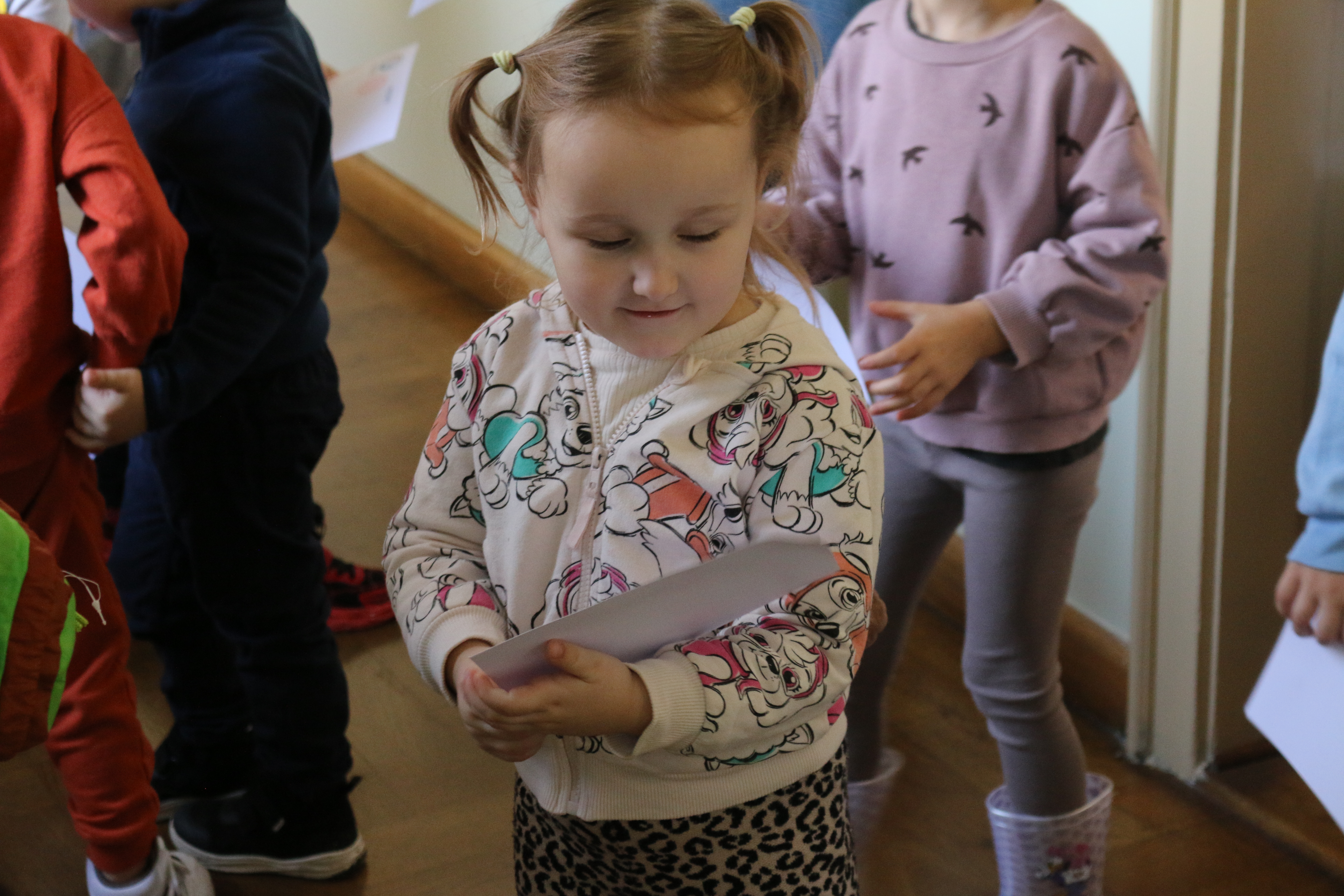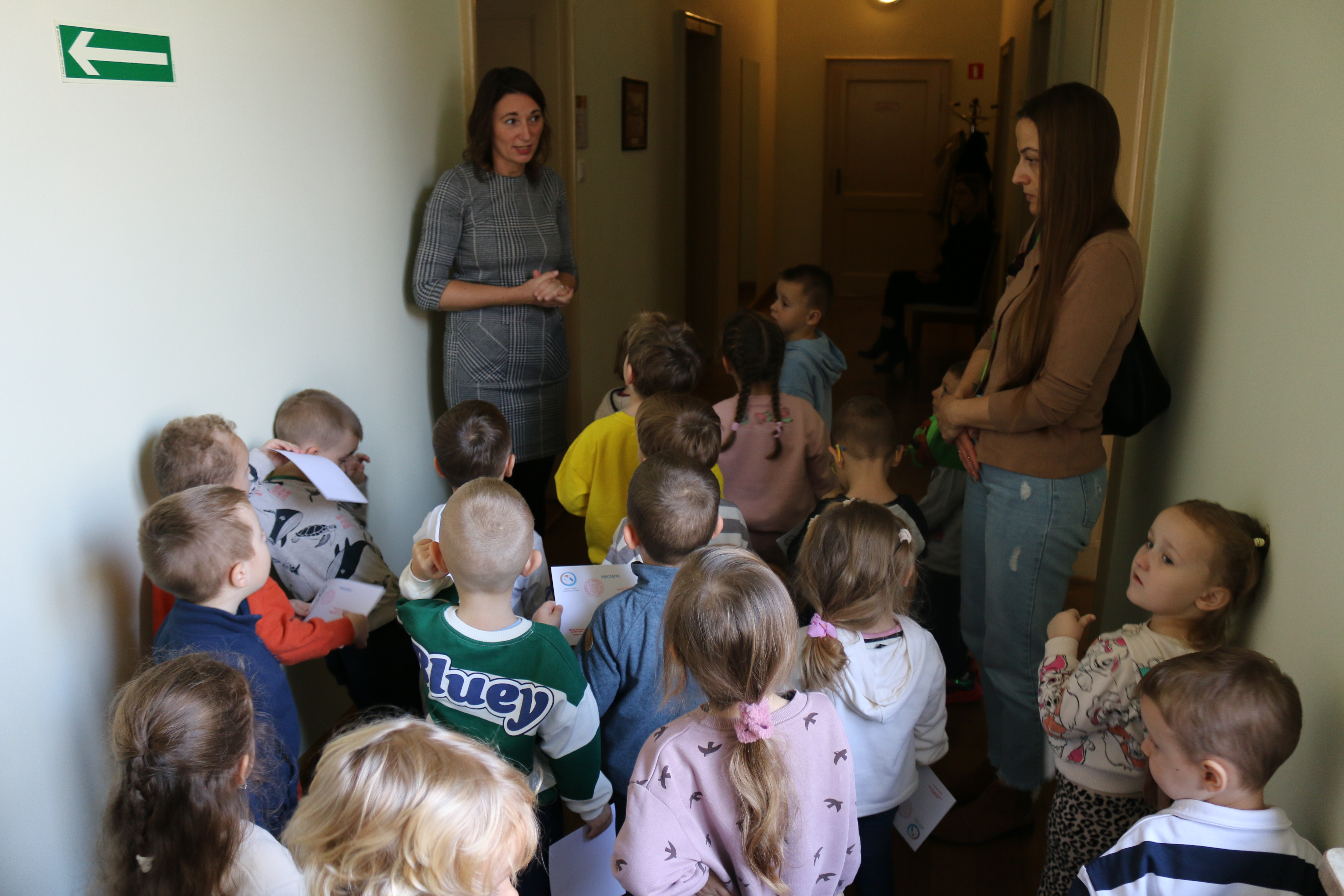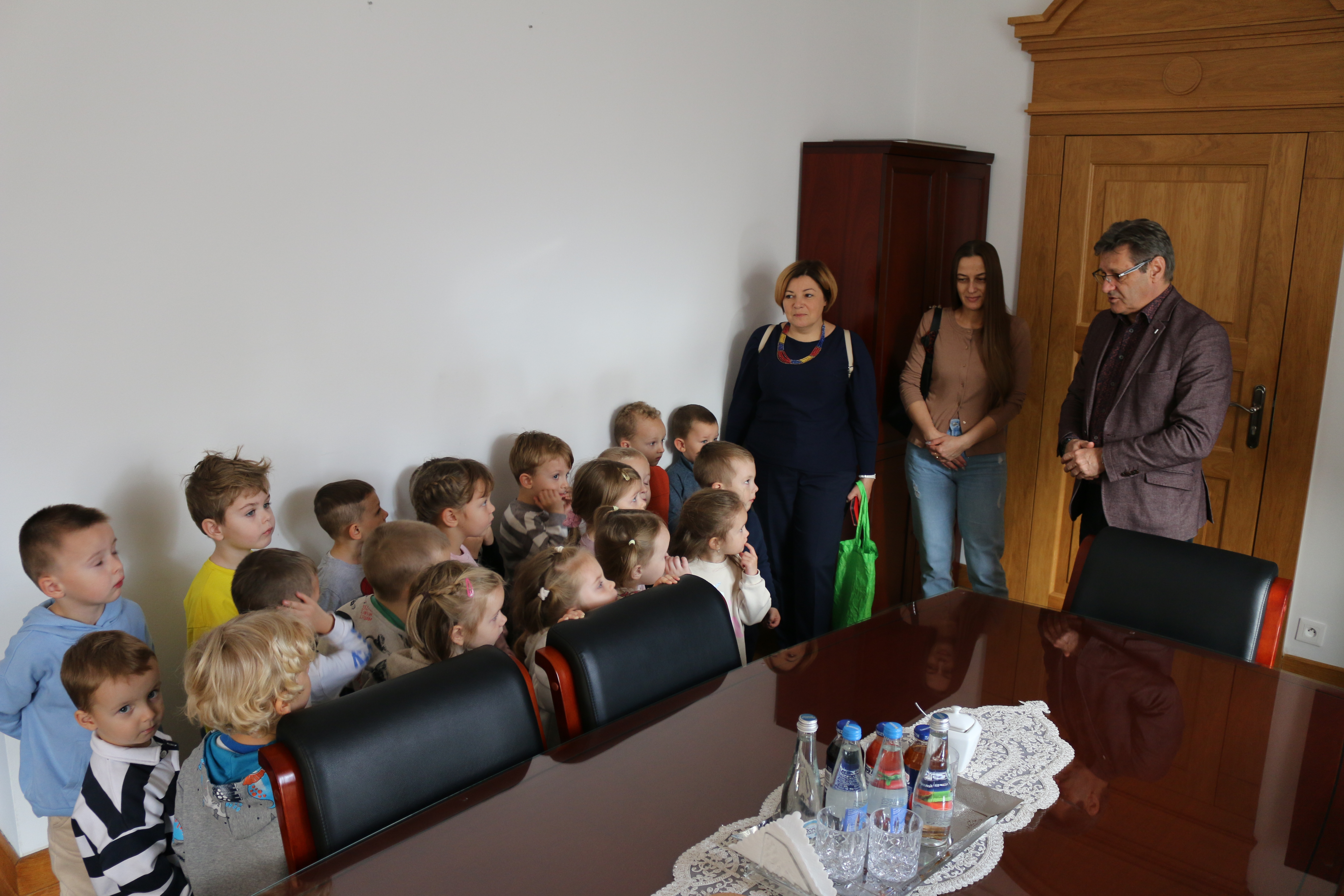 Przedszkolaki powitał Zastępca Burmistrza Miasta Mława Mariusz Szczechowicz, który z uśmiechem opowiedział im o pracy w urzędzie. Mali goście otrzymali w prezencie zestawy kredek i kolorowanek, które mają zachęcać do rozwijania wyobraźni i kreatywności. W zamian wręczyli burmistrzowi własnoręcznie wykonane z bibuły kwiatki oraz piękną laurkę, przygotowaną specjalnie na tę okazję.