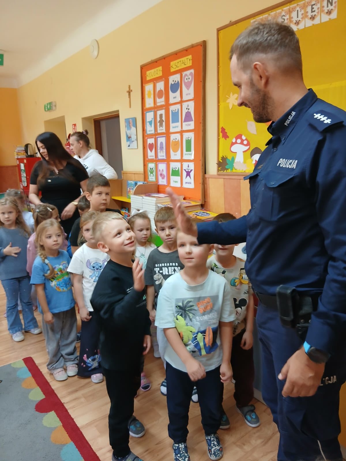 Dzieci uważnie słuchały, zadawały pytania i chętnie dzieliły się swoimi doświadczeniami. Spotkanie było ciekawą i pouczającą lekcją bezpieczeństwa.