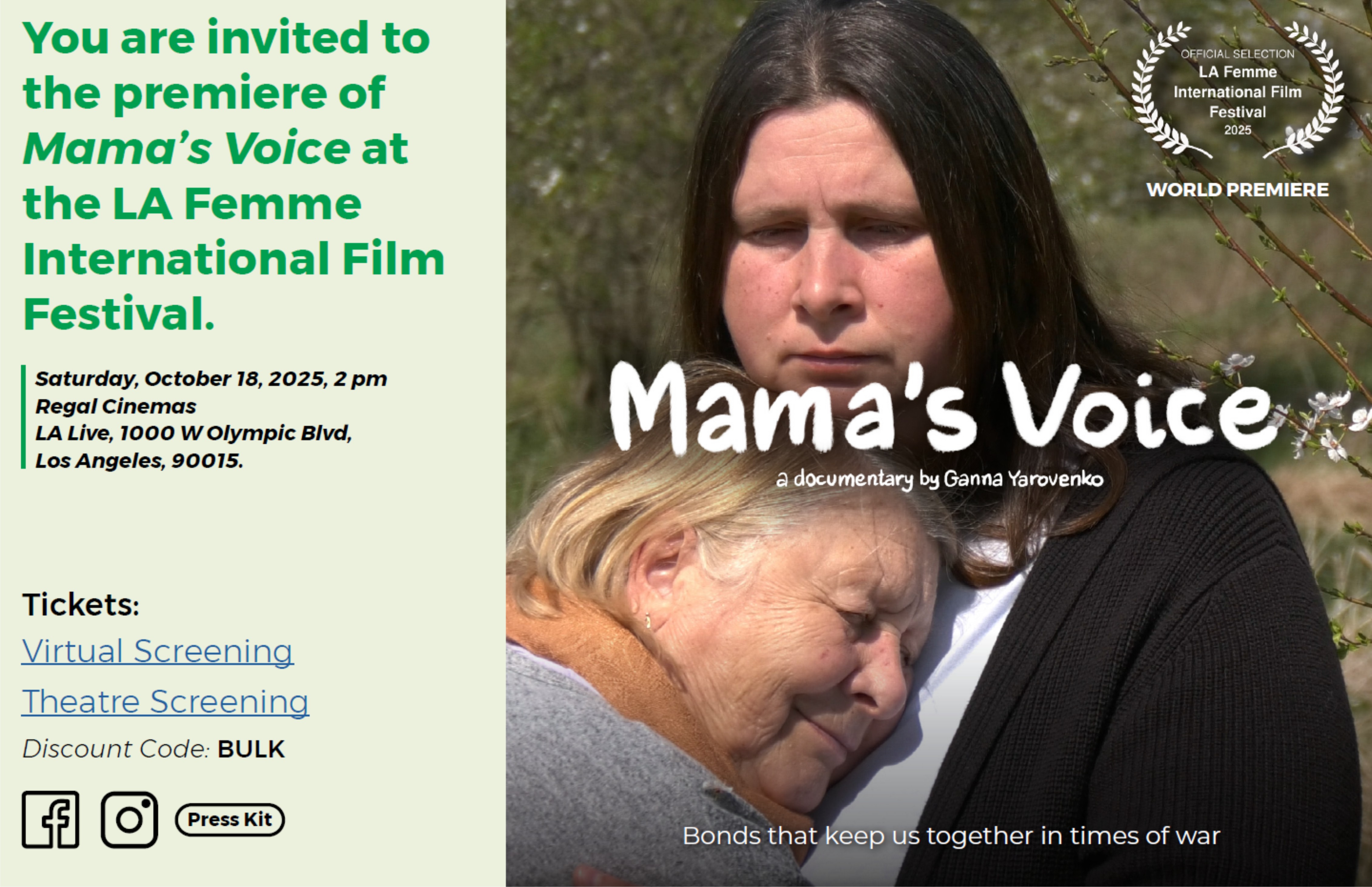 Działająca w Mławie Fundacja Dialogi dla Sztuki zrealizowała film dokumentalny „Głos mamy” (Mama’s Voice), który będzie miał światową premierę na La Femme International Film Festival w kinie Regal Cinemas w sobotę, 18 października 2025 roku o godzinie 14:00