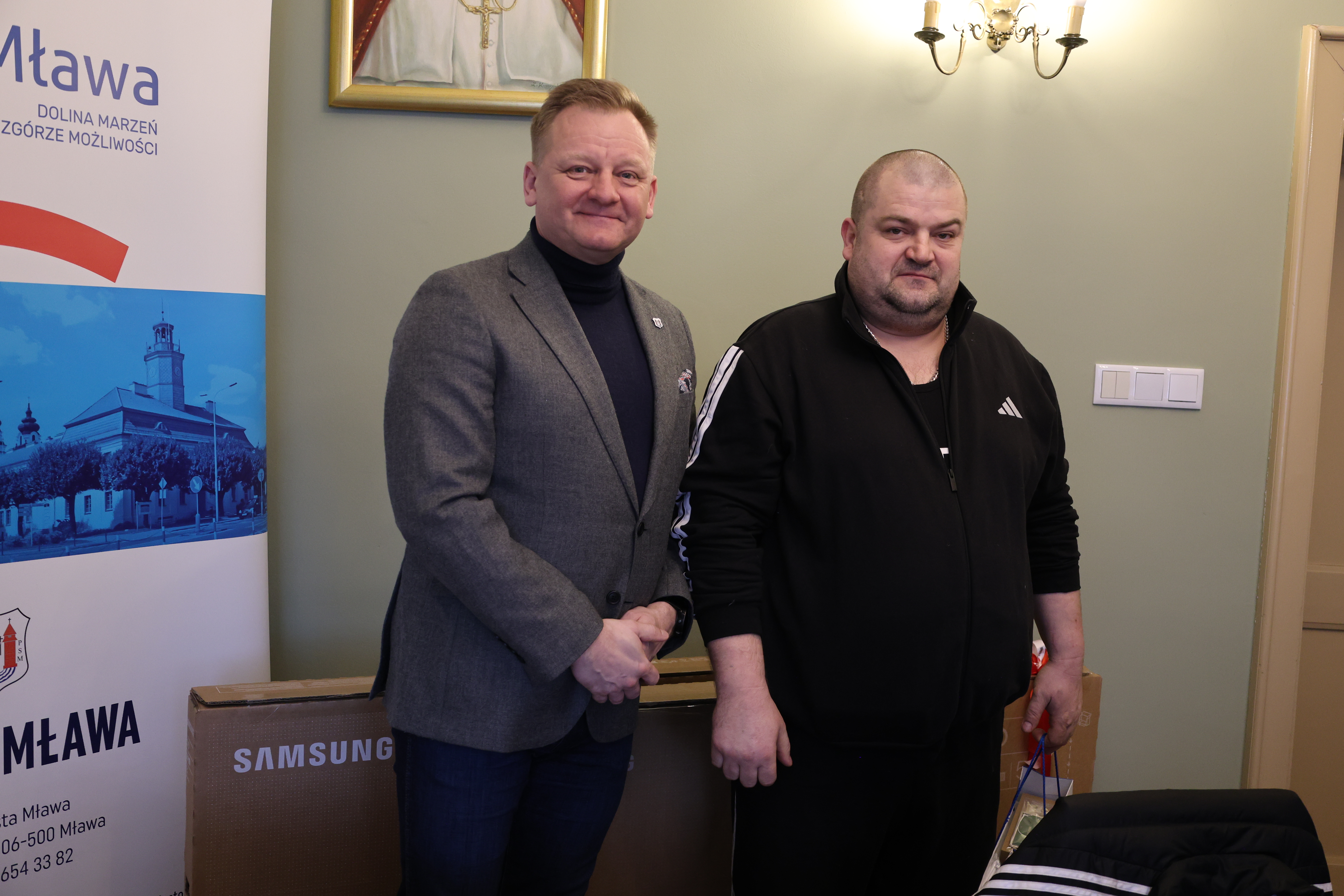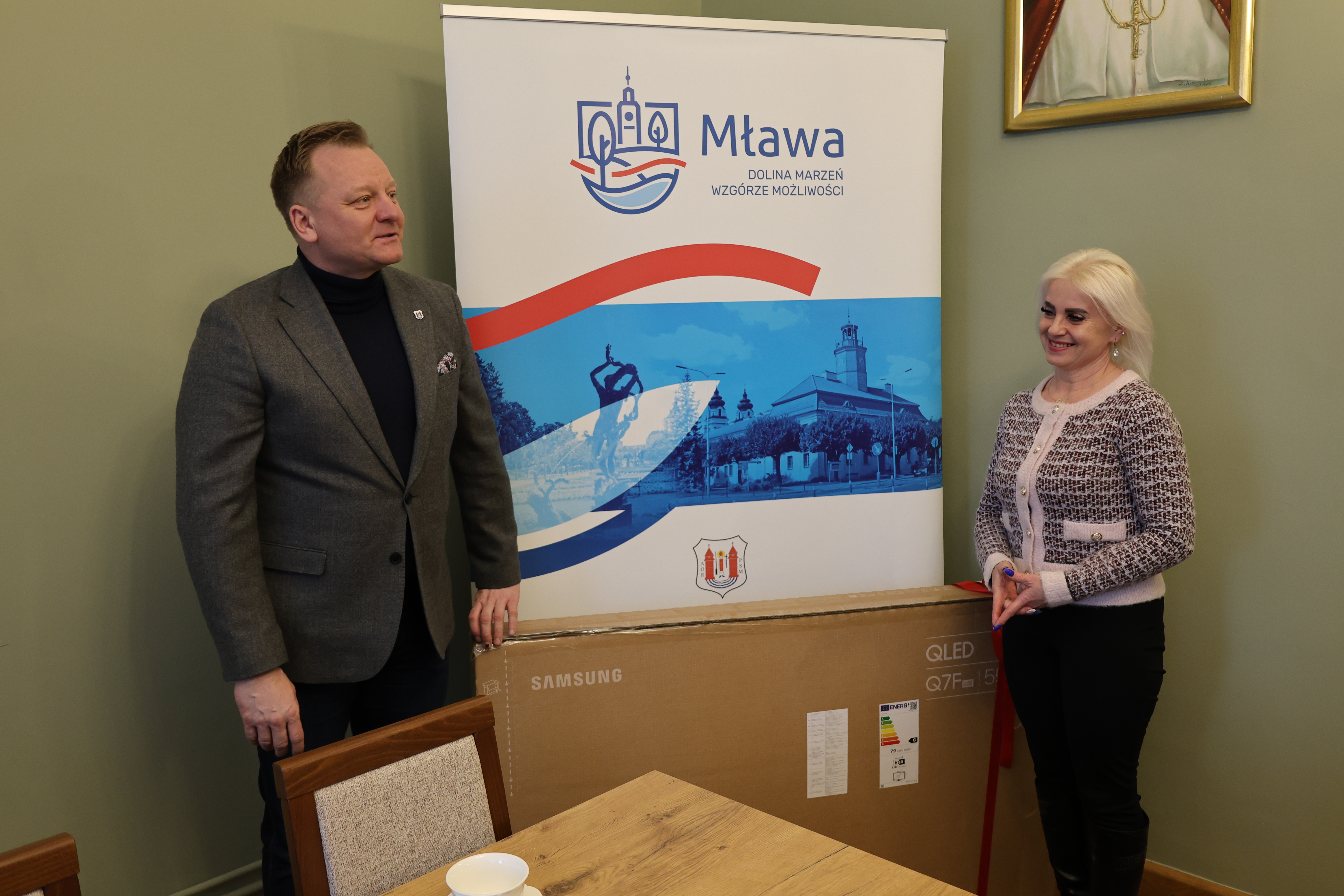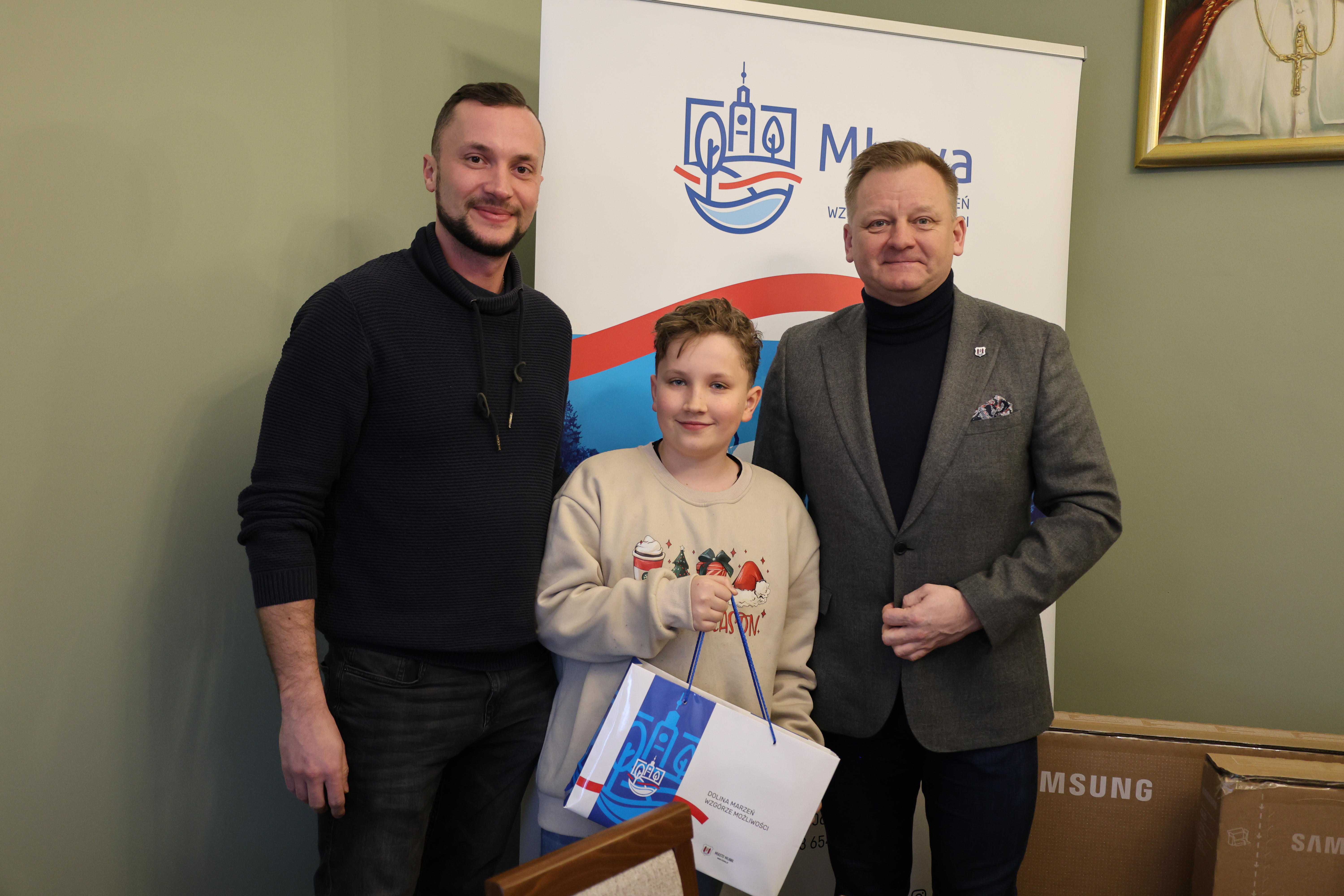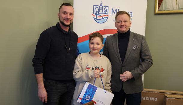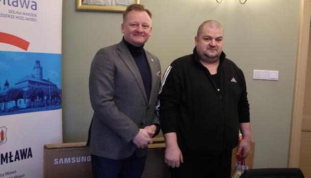 Burmistrz Miasta Mława Piotr Jankowski spotkał się dziś ze zwycięzcami oraz laureatami wyróżnień w organizowanym przez siebie konkursie na najpiękniej oświetloną i udekorowaną posesję lub balkon w Mławie. To był bardzo przyjemny moment – zwłaszcza dla dwojga zwycięzców, którzy otrzymali z rąk burmistrza po 55-calowym telewizorze.