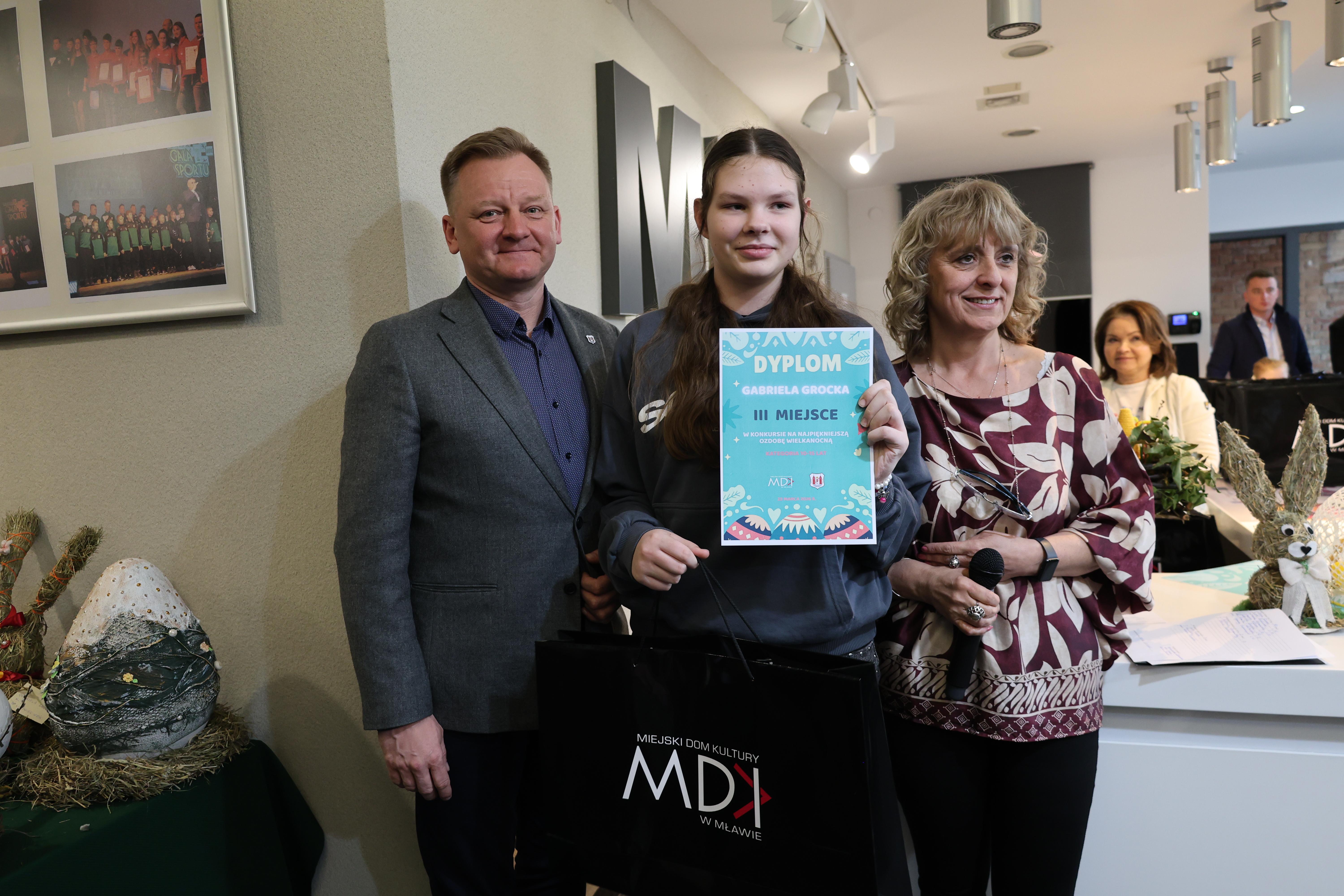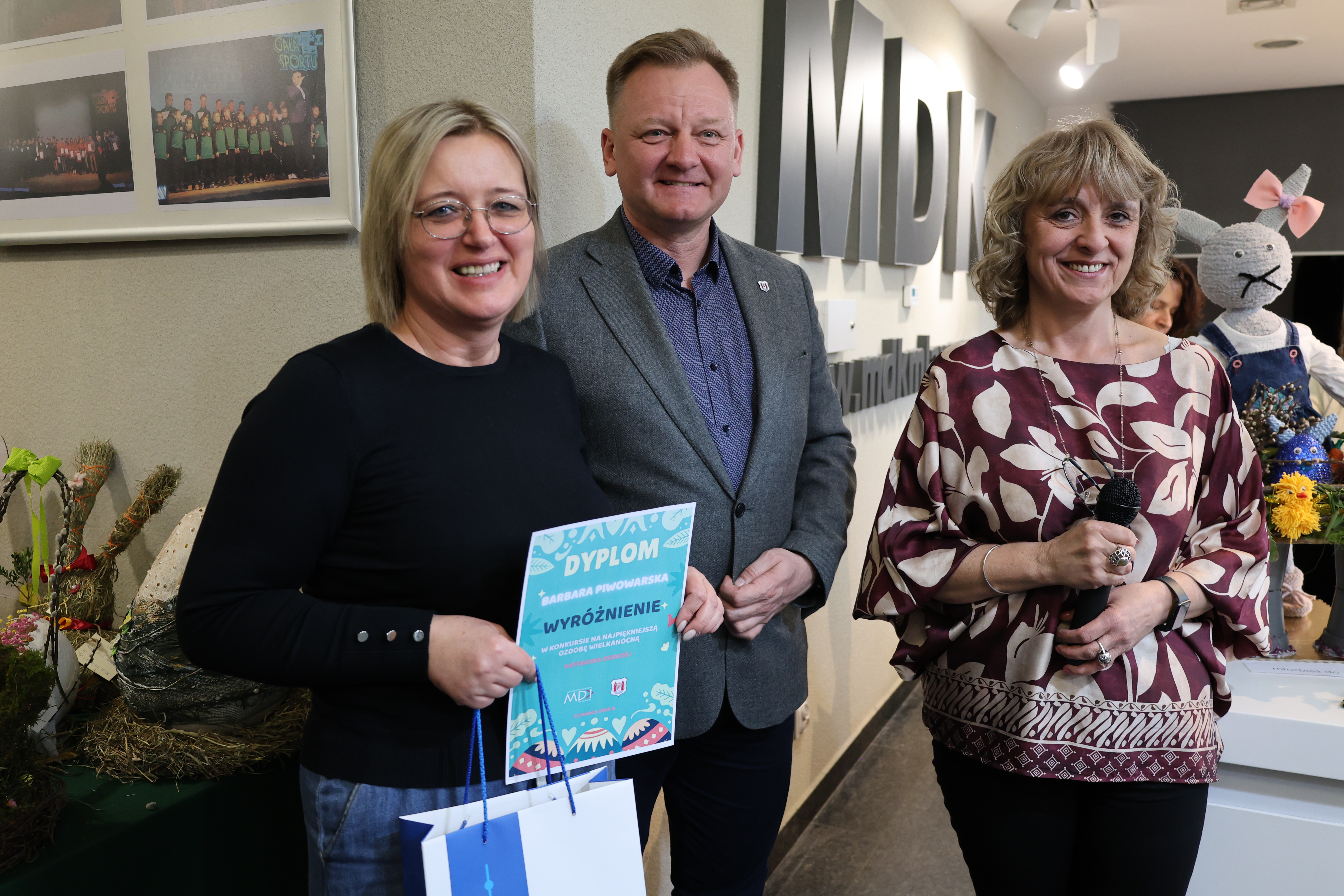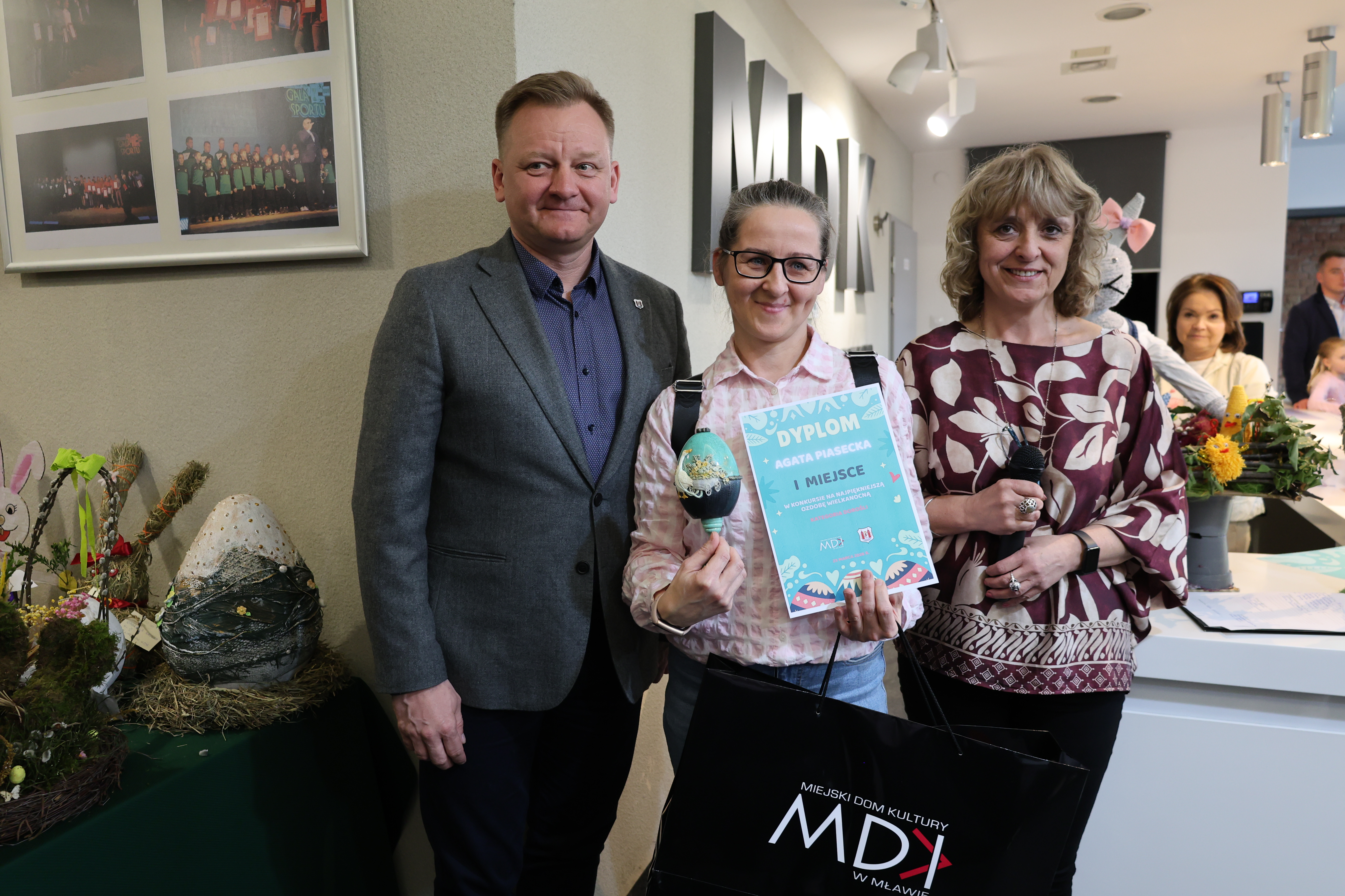 Burmistrz Miasta Mława Piotr Jankowski i Dyrektor Miejskiego Domu Kultury w Mławie Edyta Suszek wręczyli wczoraj nagrody laureatom i zdobywcom wyróżnień w tegorocznej edycji Konkursu na Najpiękniejszą Ozdobę Wielkanocną. Cieszyła się ona ogromnym zainteresowaniem – mieszkańcy powiatu mławskiego nadesłali aż 162 prace. Każda zachwycała niezwykłym pięknem i kunsztem wykonania. Twórcom serdecznie gratulujemy i dziękujemy za udział w artystycznych zmaganiach.