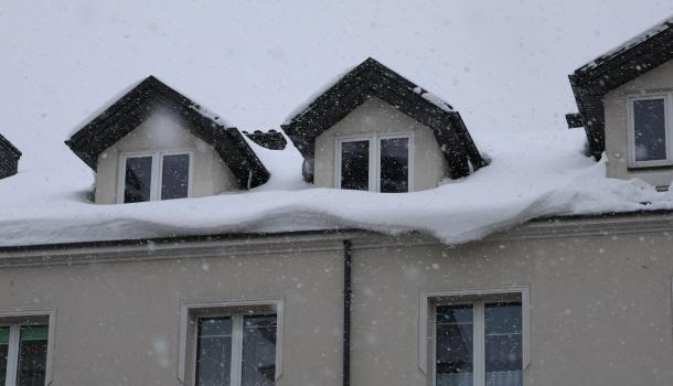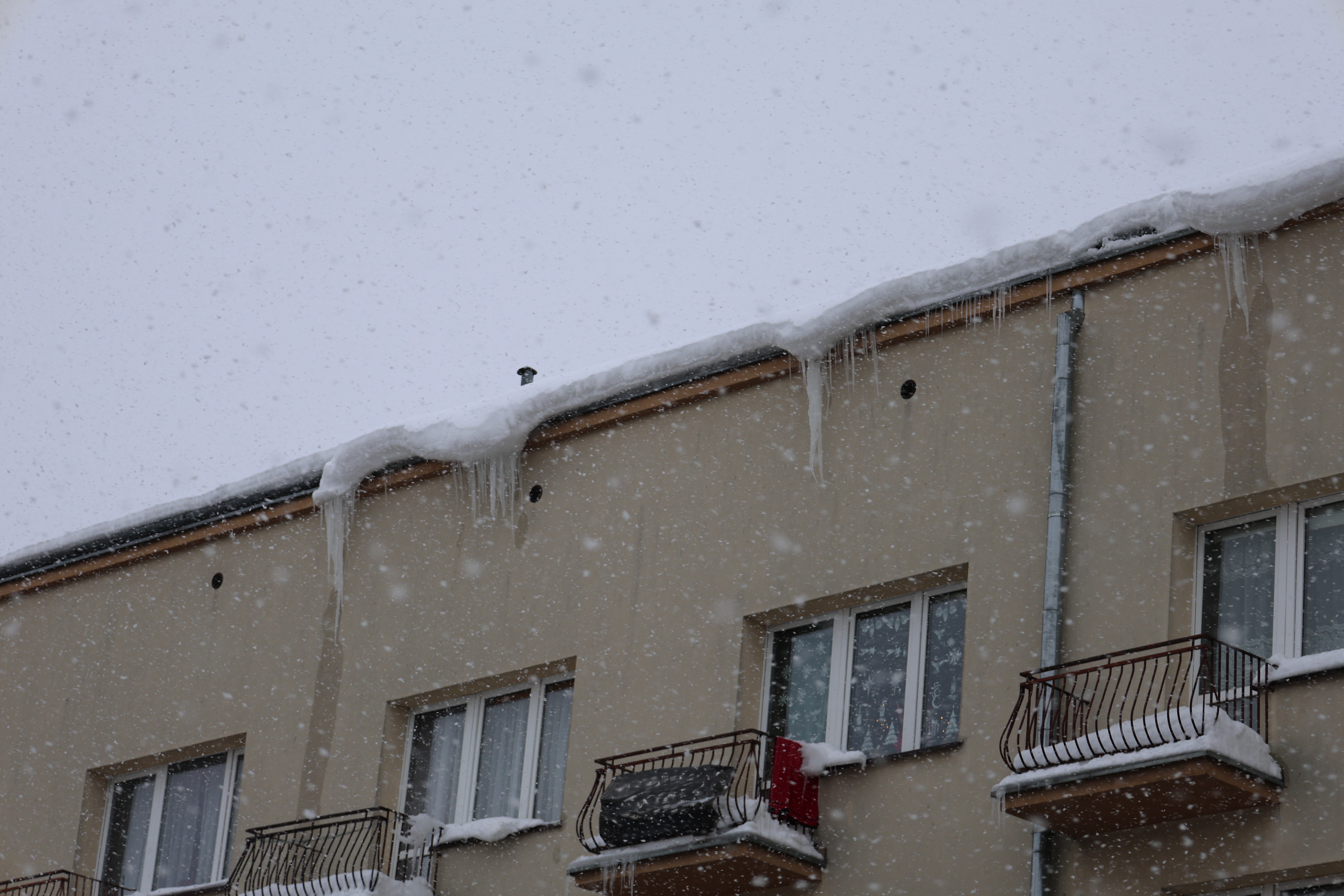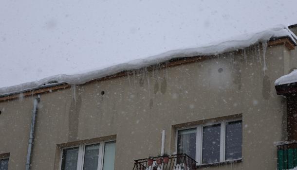 Zalegający na nich ciężki wilgotny śnieg może się obsuwać – samoczynnie bądź na skutek prowadzonego w danym czasie przez właściciela nieruchomości odśnieżania dachu – powodując poważne zagrożenie bezpieczeństwa pieszych. Podobne niebezpieczeństwo mogą stwarzać odrywające się od krawędzi dachów sople. Prosimy o szczególną ostrożność i unikanie przechodzenia w pobliżu brzegów dachów.