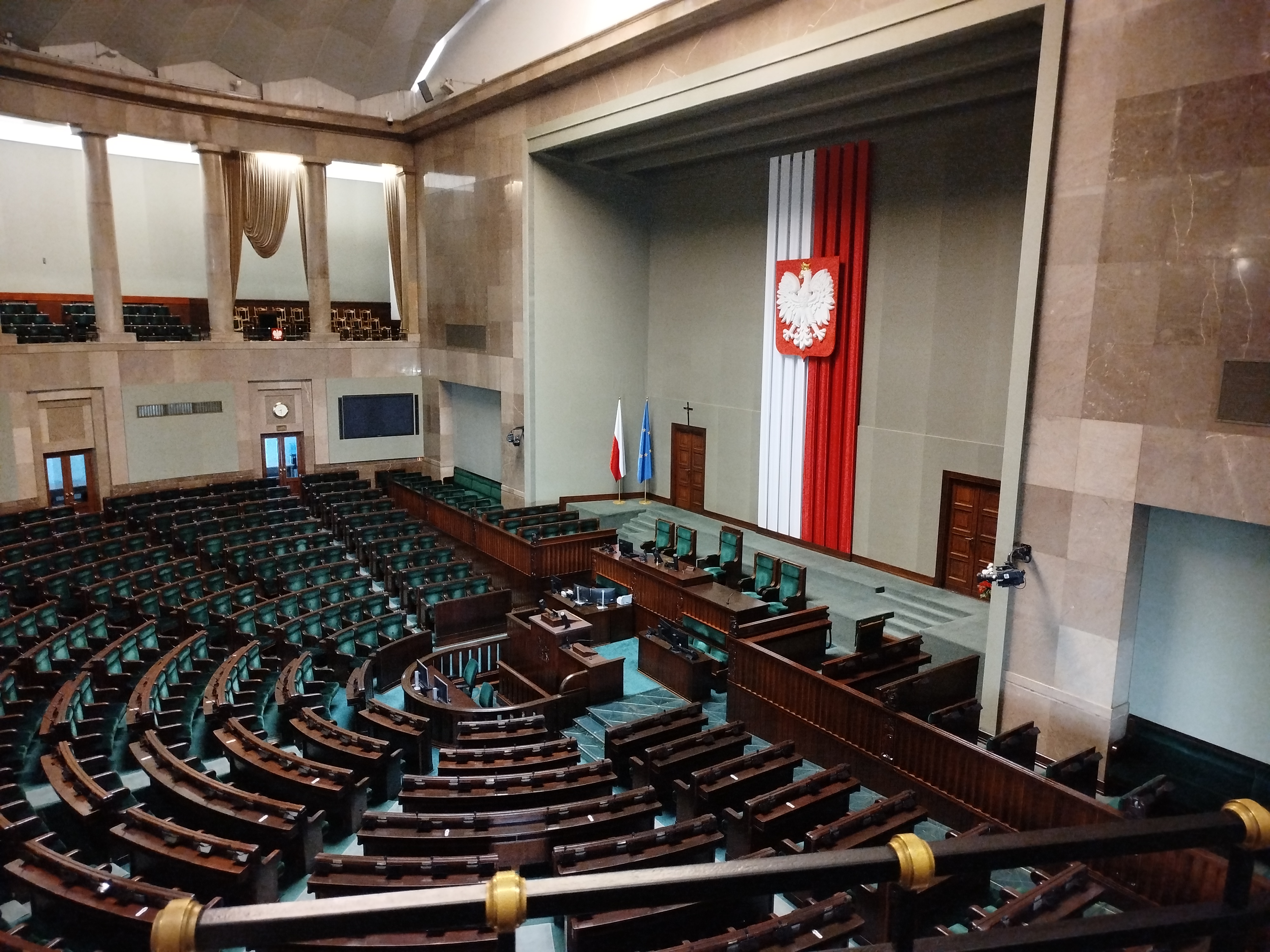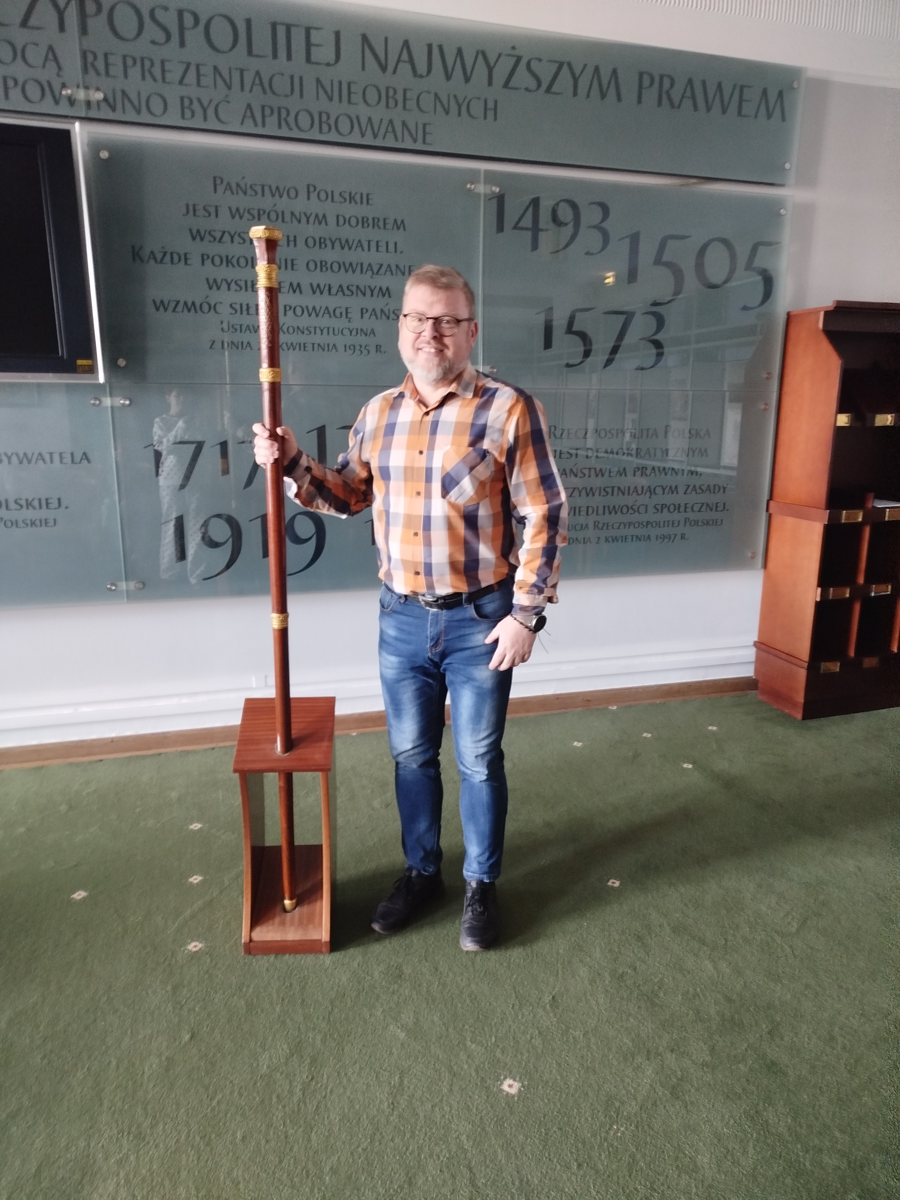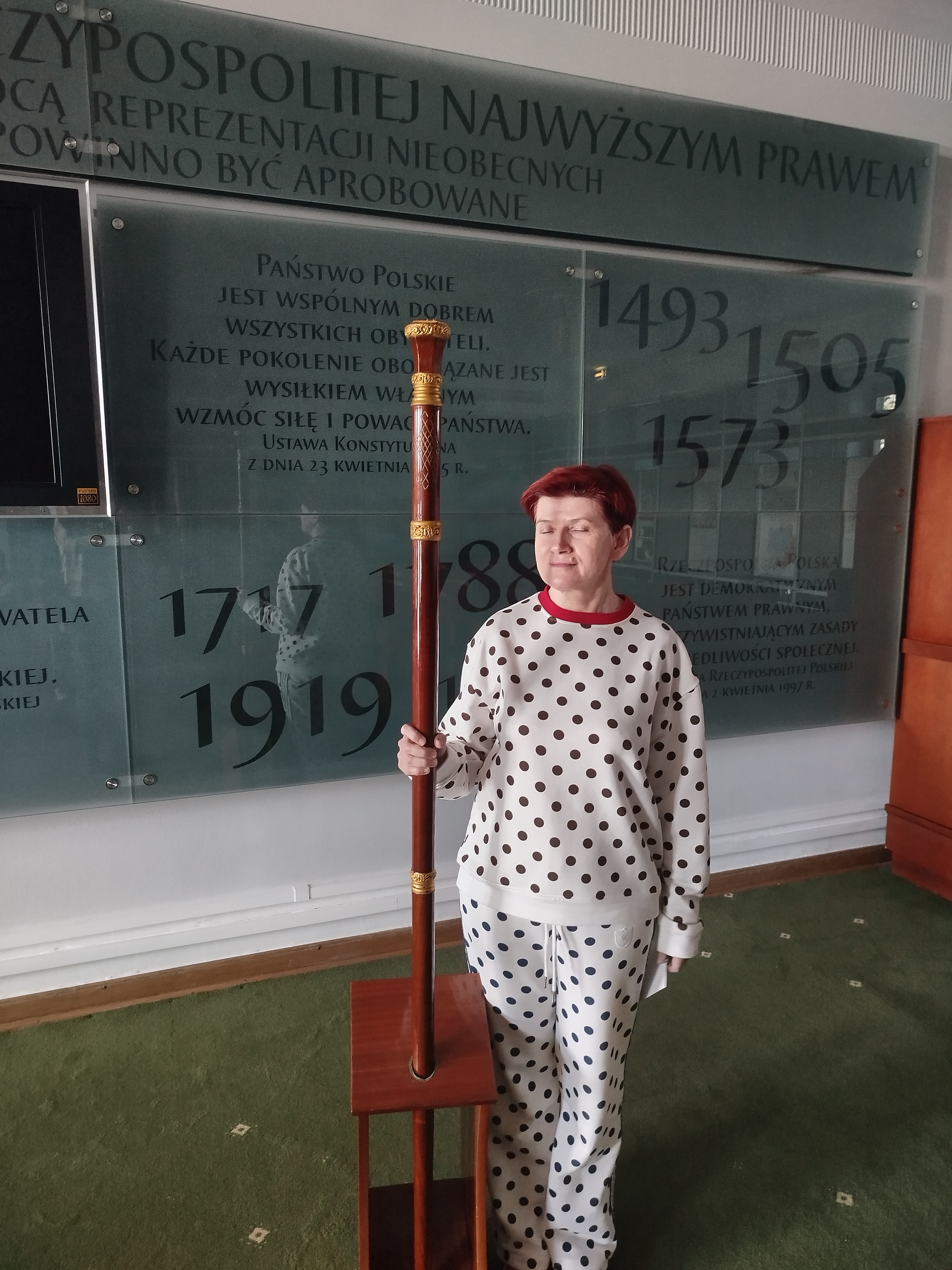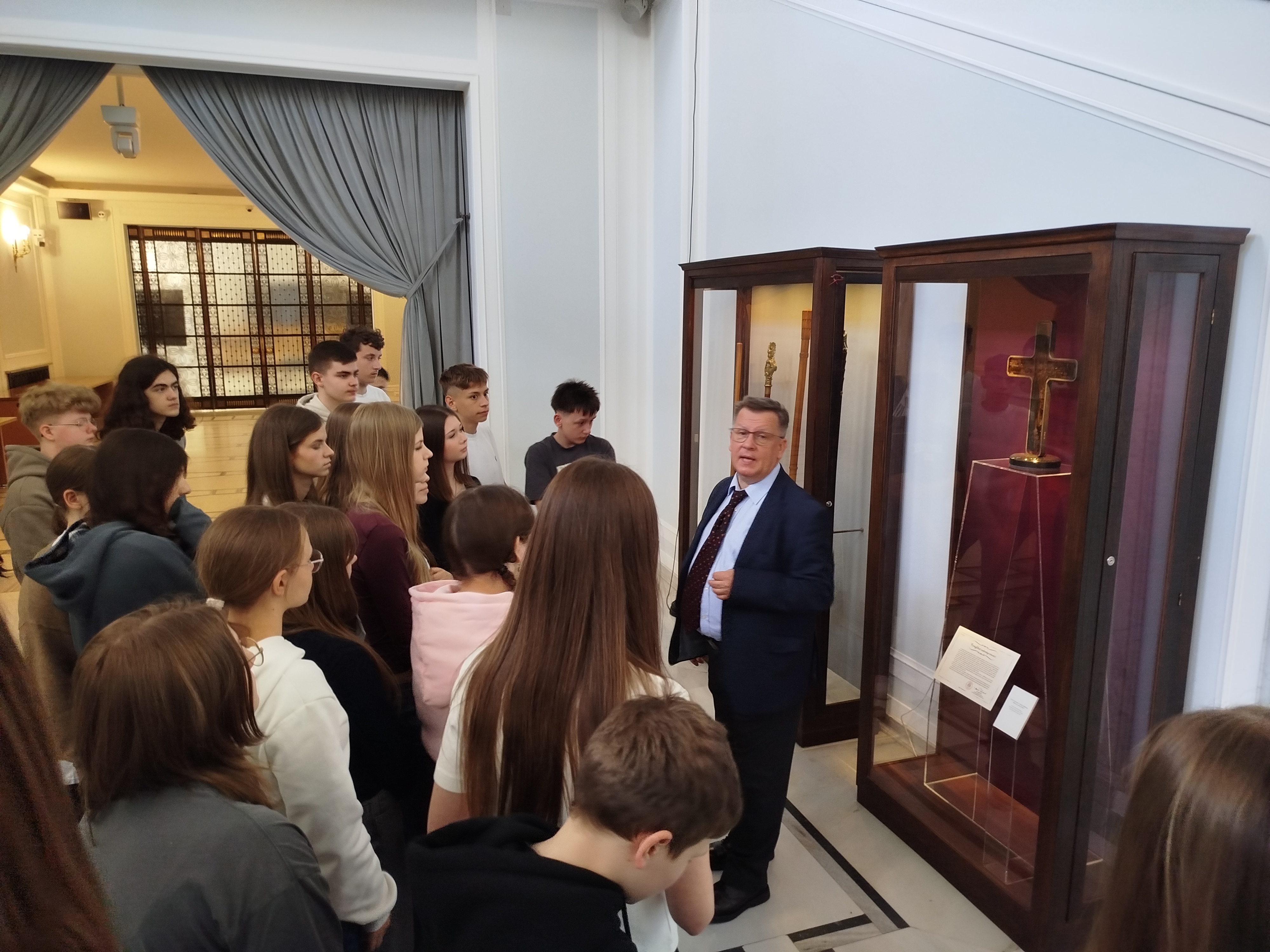Przeszliśmy również podziemnymi korytarzami, gdzie poznaliśmy historię polskiego parlamentaryzmu, zajrzeliśmy do holu głównego – miejsca konferencji prasowych – oraz zobaczyliśmy słynne schody sejmowe, znane z wielu wydarzeń medialnych.