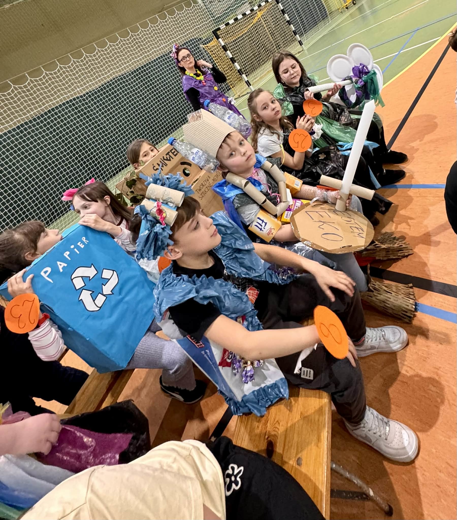 - najmłodsi uczniowie (oddział 0 oraz klasy 1–3) wystąpili z ekologicznymi piosenkami oraz zaprezentowali własnoręcznie wykonane instrumenty z materiałów wtórnych,