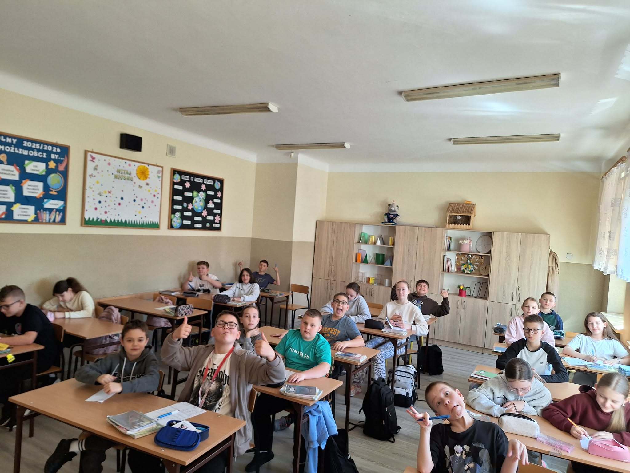 Do obchodów Dnia Ziemi włączyły się także klasy 5, które świętowały ten dzień na lekcjach matematyki. Uczniowie rozwiązywali różnorodne zadania oraz uzupełniali hasło związane z ochroną środowiska. Dzięki temu połączyli naukę z zabawą, jednocześnie pogłębiając swoją wiedzę na temat dbania o naszą planetę.
