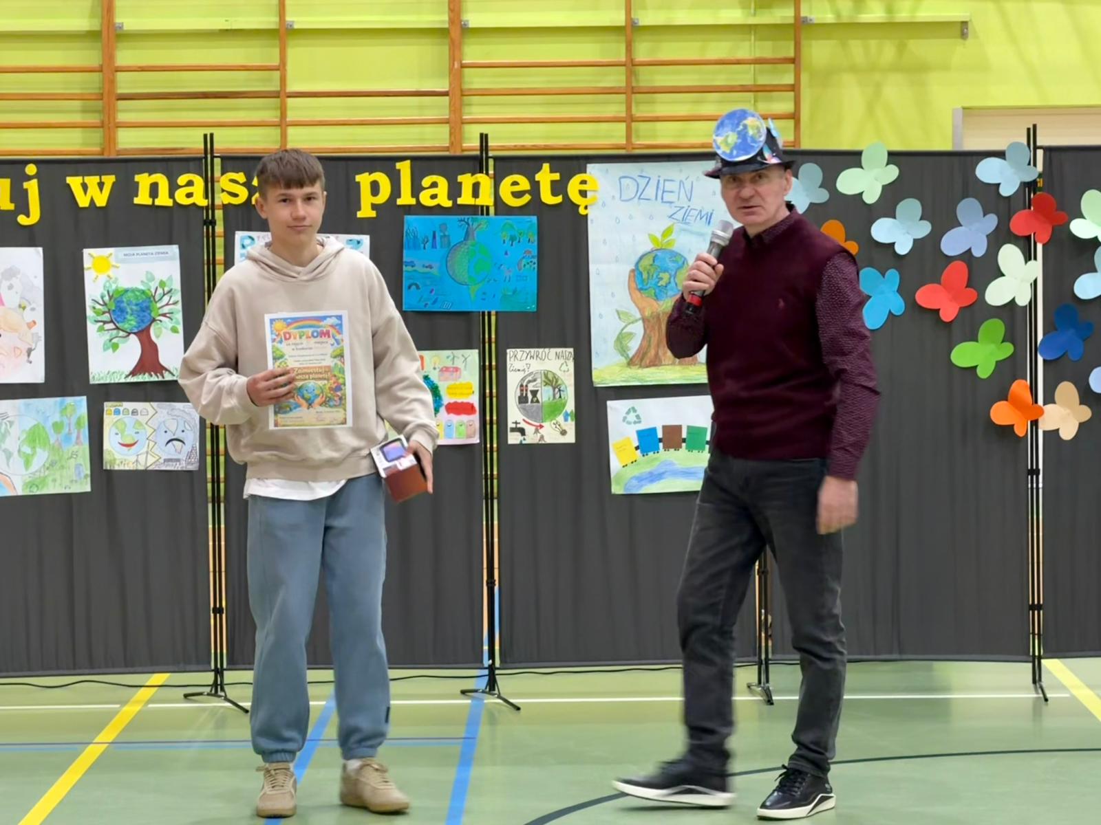 - uczniowie klas 7–8 zaprezentowali swoje nagrodzone prezentacje, dzieląc się wiedzą i refleksją na temat przyszłości naszej planety,