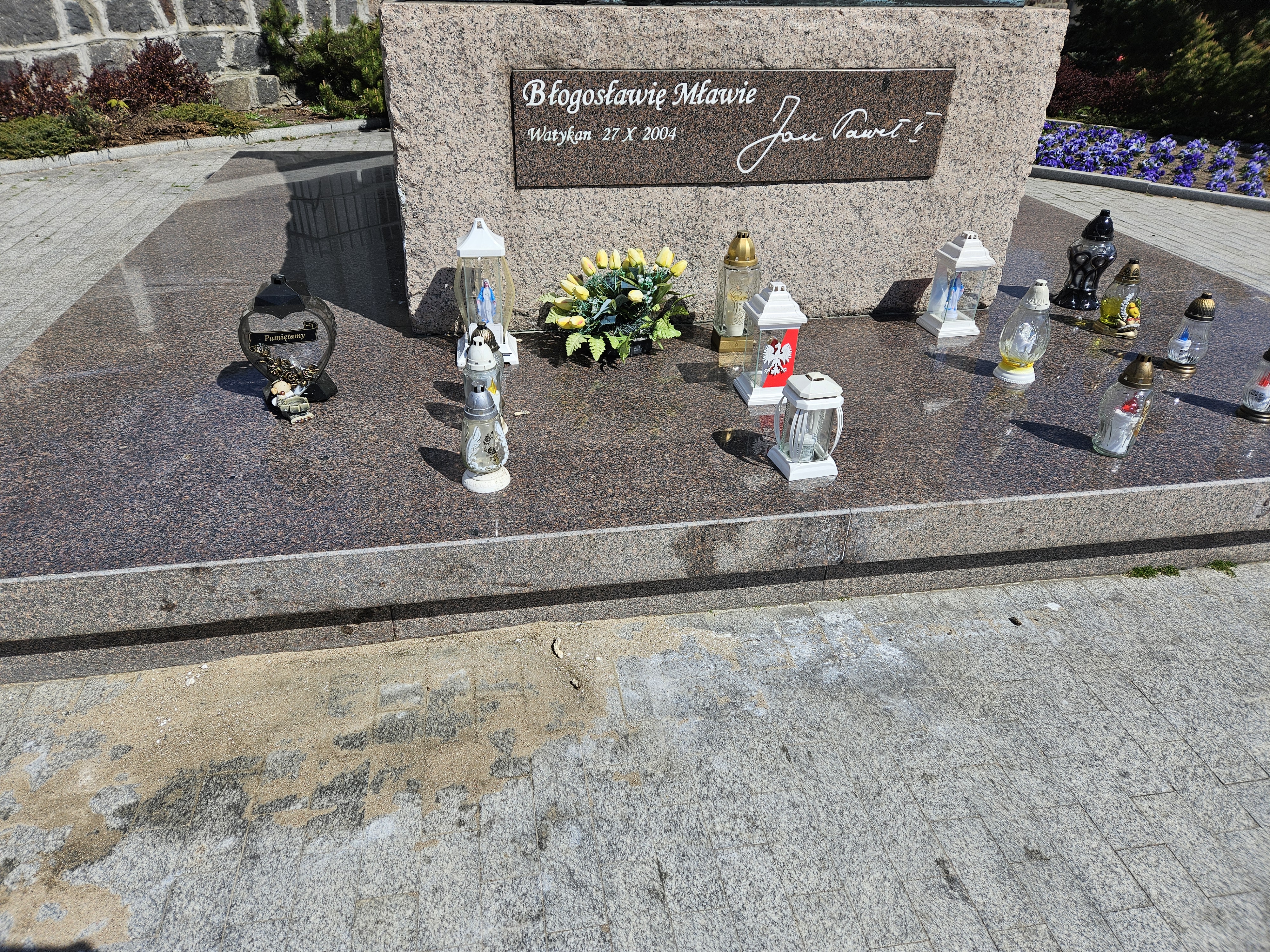 W nawiązaniu do wcześniejszego komunikatu dotyczącego zanieczyszczenia cokołu pomnika św. Jana Pawła II, informujemy, że dzięki sprawnym działaniom mławskiej Policji, Straży Miejskiej oraz zabezpieczonemu monitoringowi miejskiemu, sprawca tego czynu został ustalony i zatrzymany. Jest to 50-letni mieszkaniec powiatu mławskiego, narodowości Polskiej.