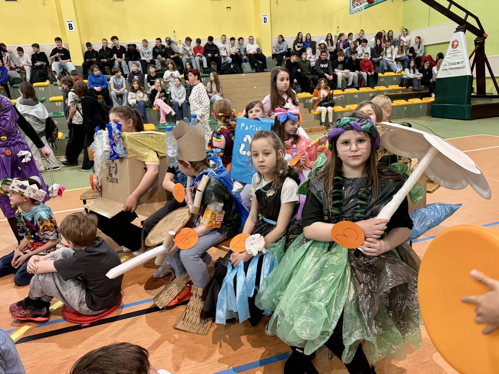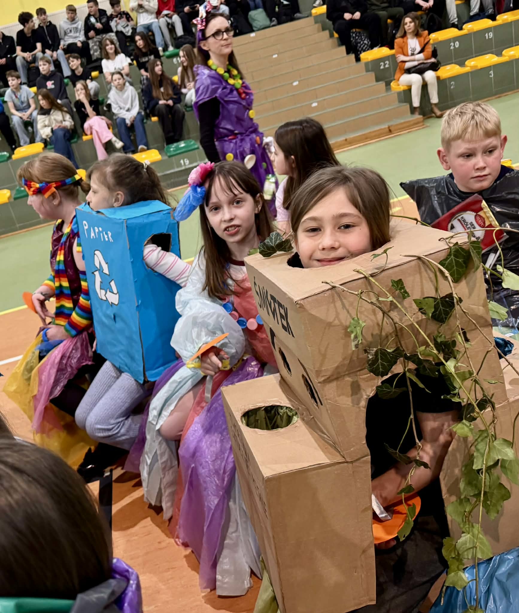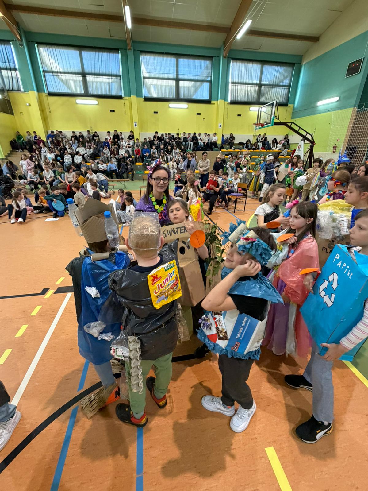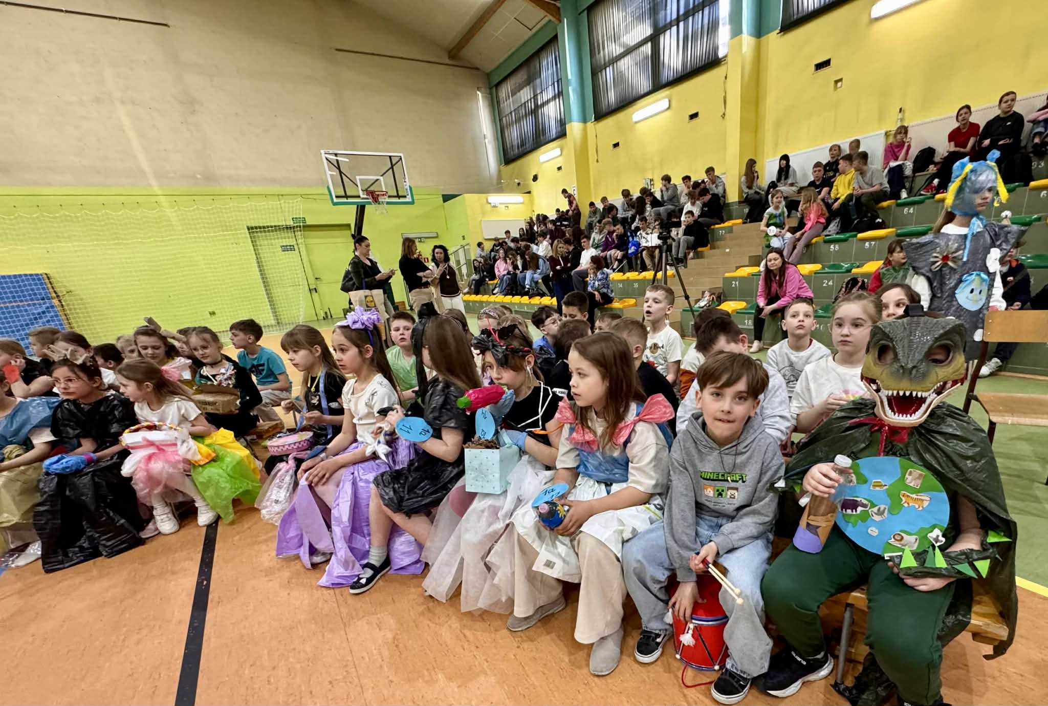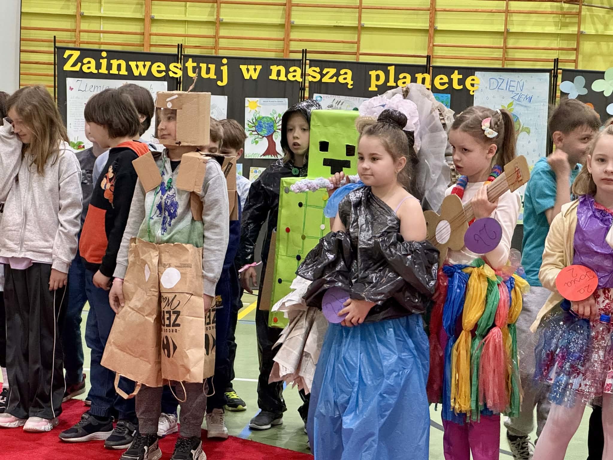 - najmłodsi uczniowie (oddział 0 oraz klasy 1–3) wystąpili z ekologicznymi piosenkami oraz zaprezentowali własnoręcznie wykonane instrumenty z materiałów wtórnych,